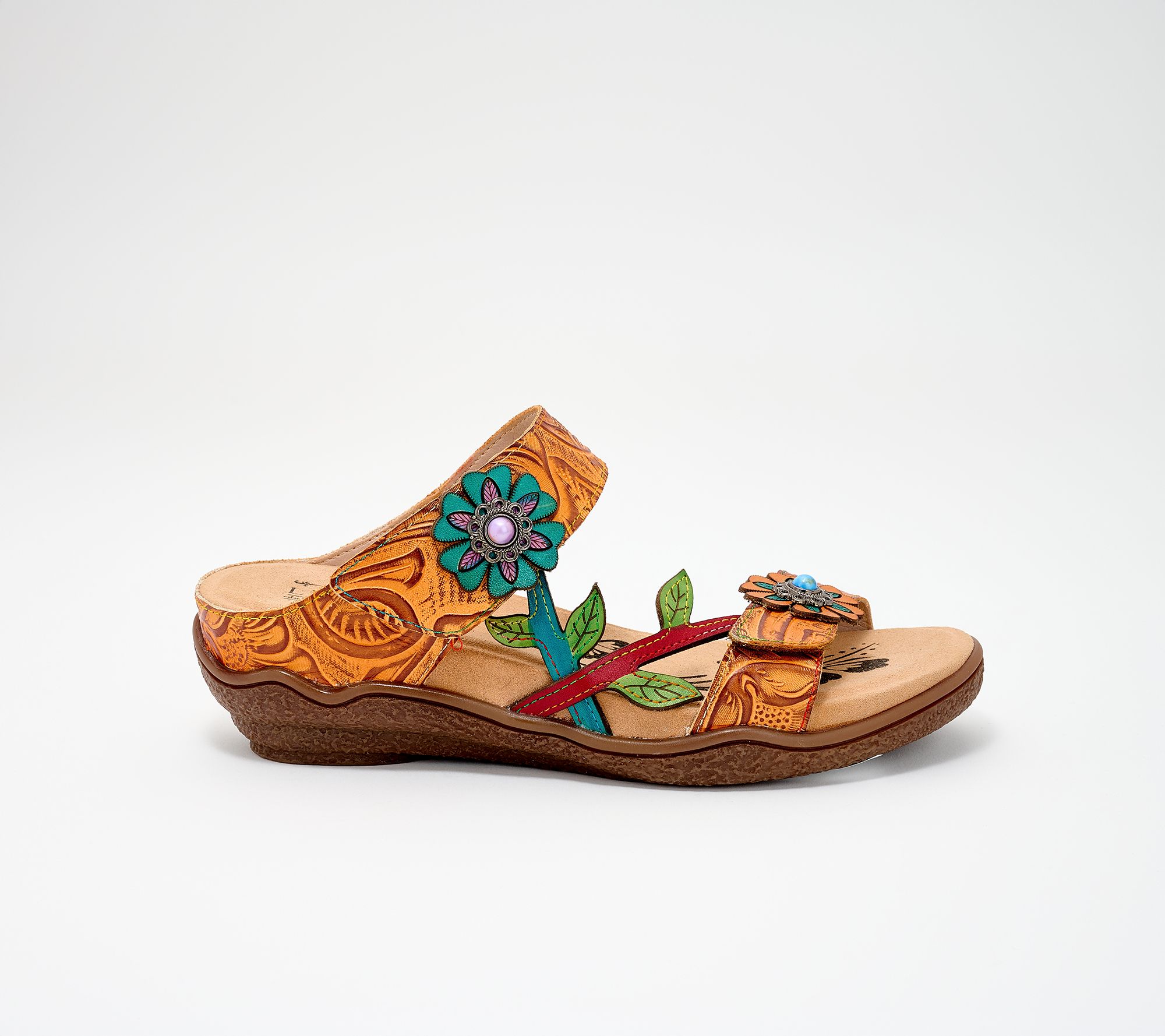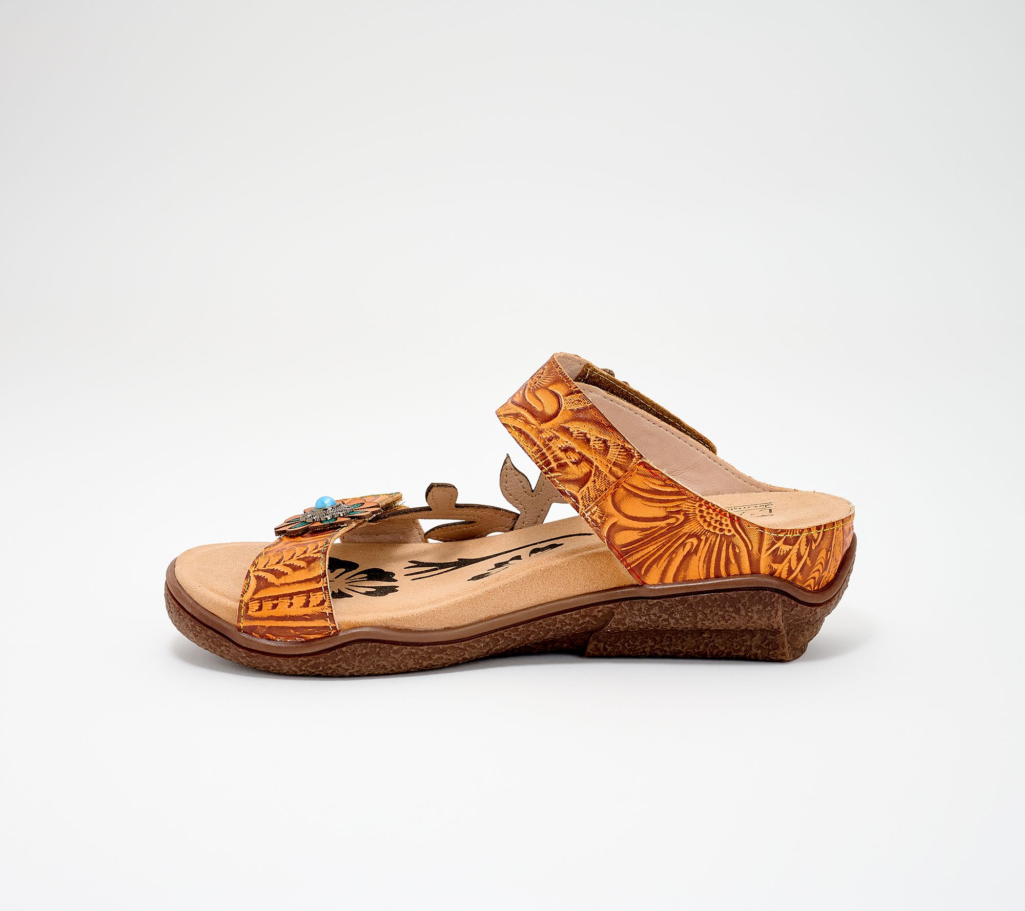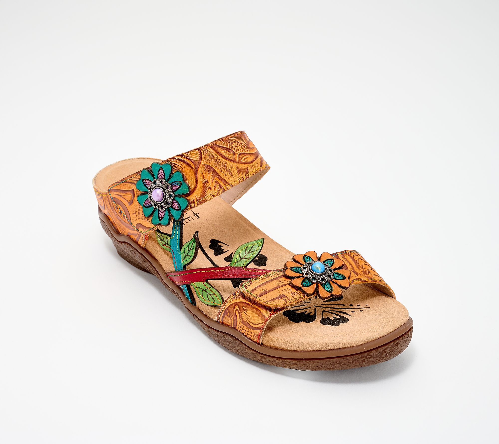 L'Artiste by Spring Step Leather Wedge Slide Sandals- Carbone