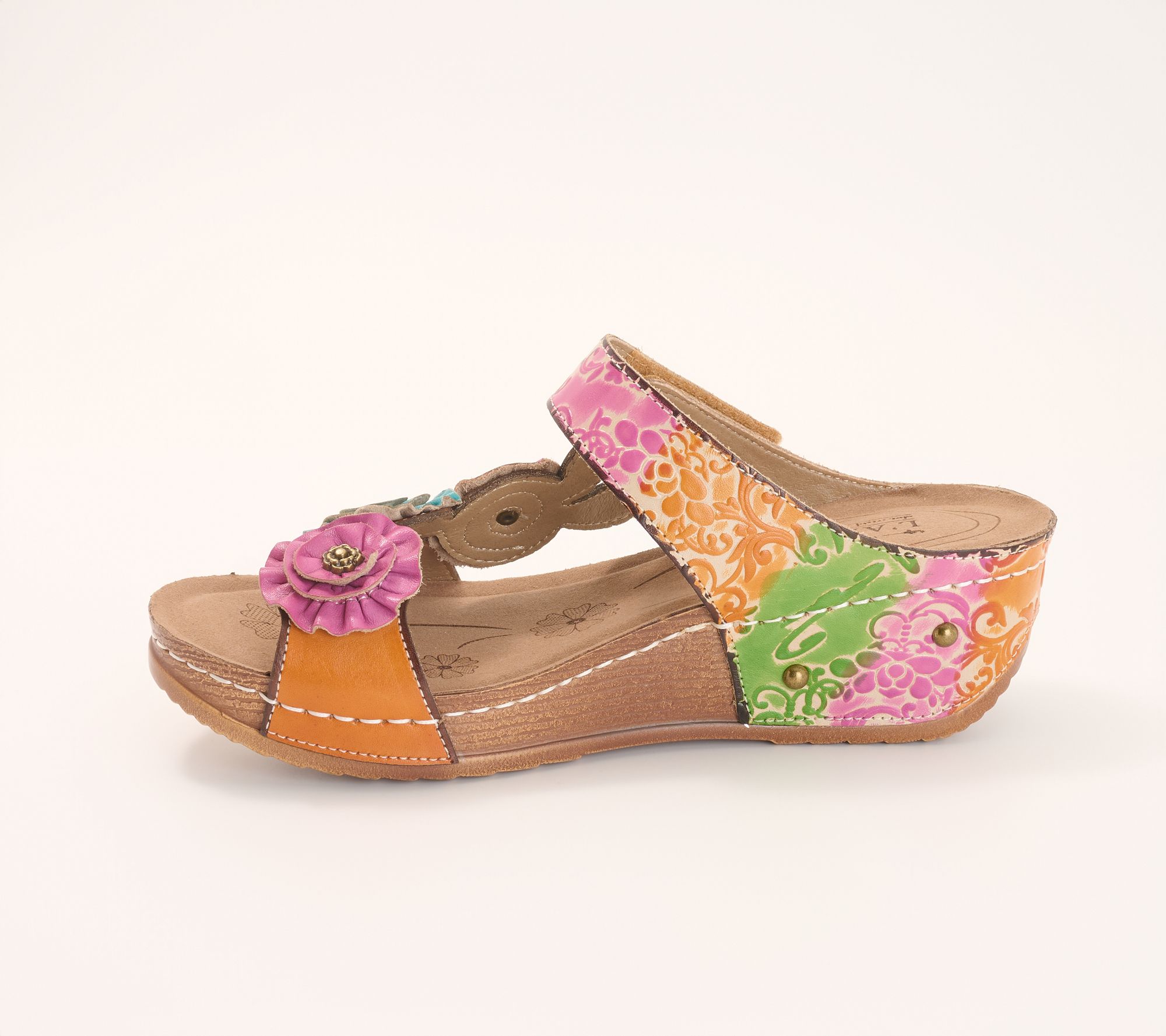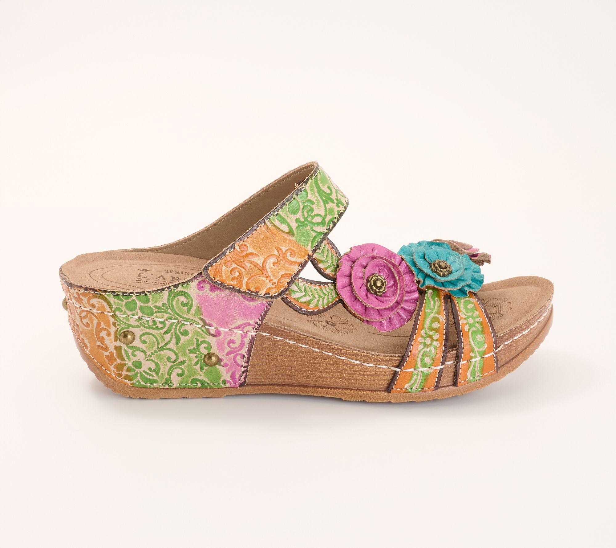 A sunny afternoon calls for playful style, and these leather wedge sandals answer with cheerful color and artisan flair. Embossed leather and 3D floral accents create a standout look, while the easy hook-and-loop closure keeps things fuss-free as you head from morning errands to brunch. From L'Artiste by Spring Step.