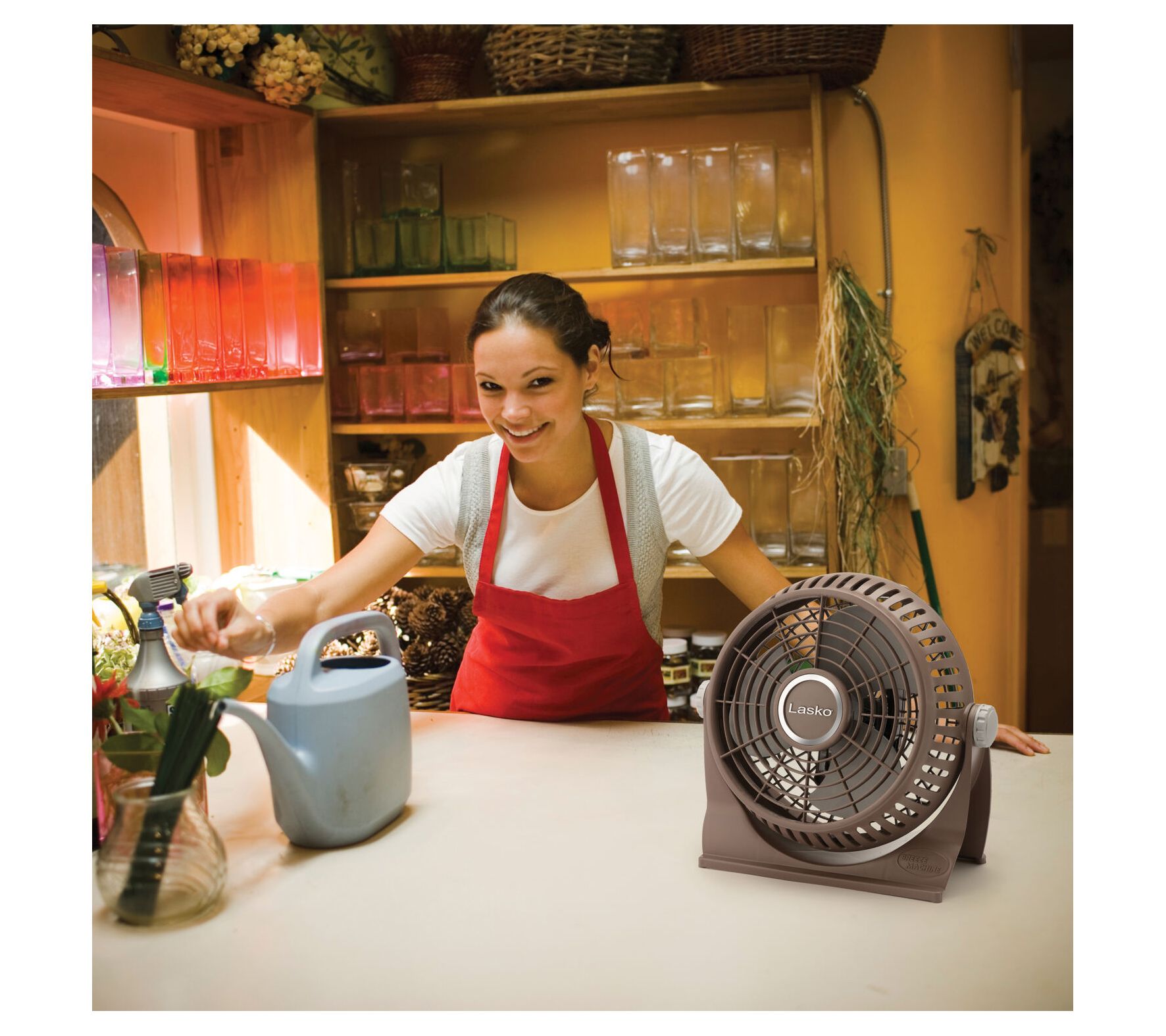 Create a breezy, comfortable environment in your home with this pivoting fan, featuring two refreshing speeds, an adjustable tilt head, and a handle so you can easily move it wherever you need it most. From Lasko.