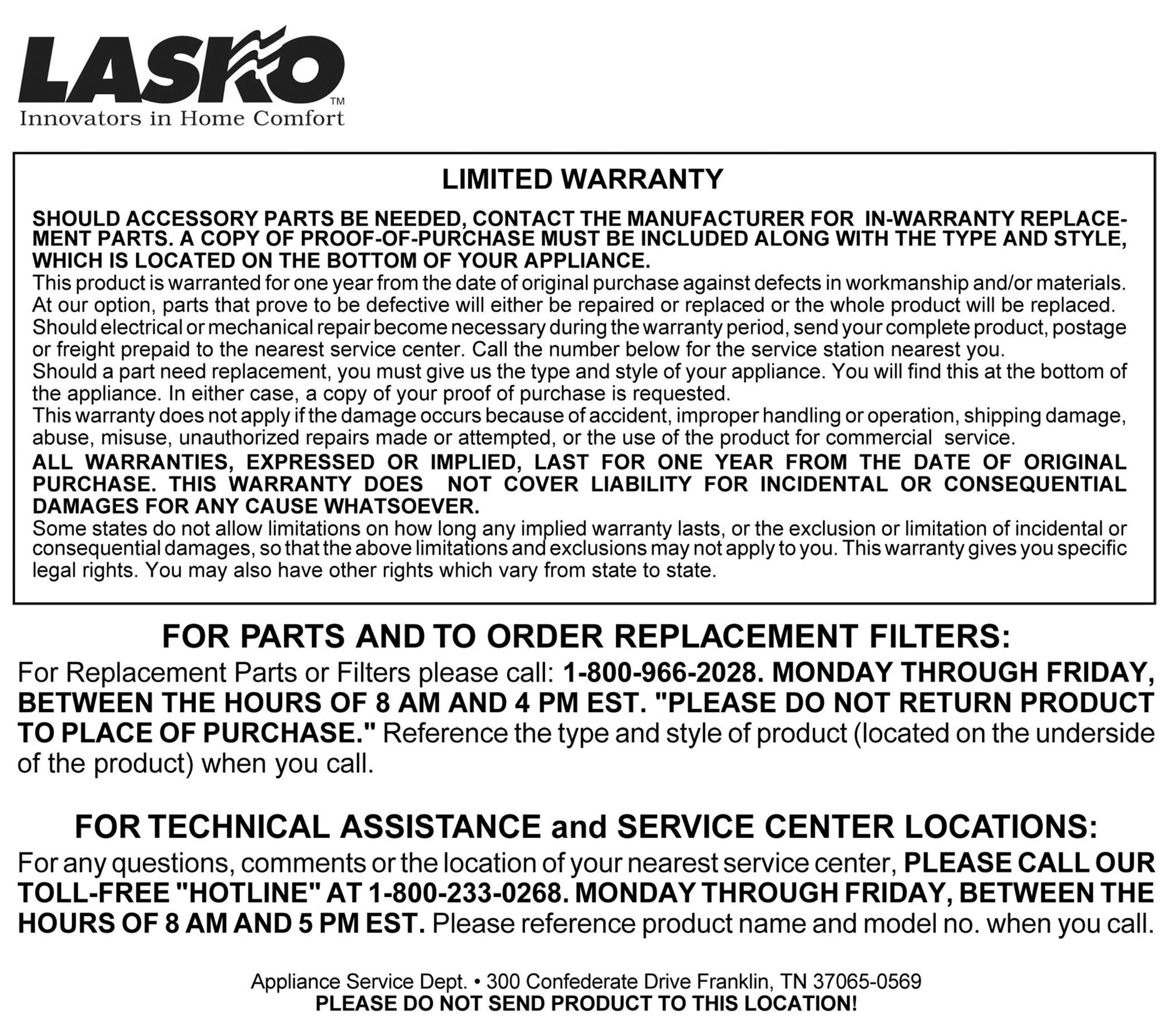 • Includes fan and manual