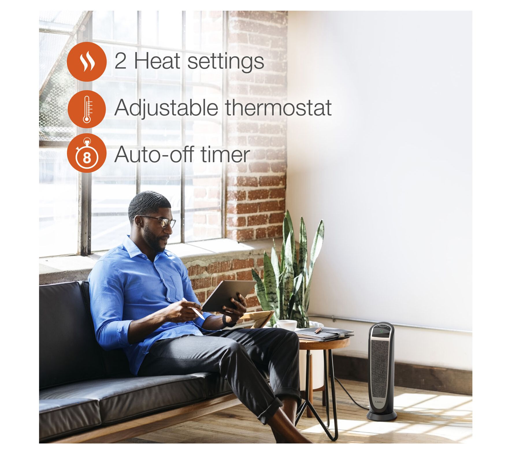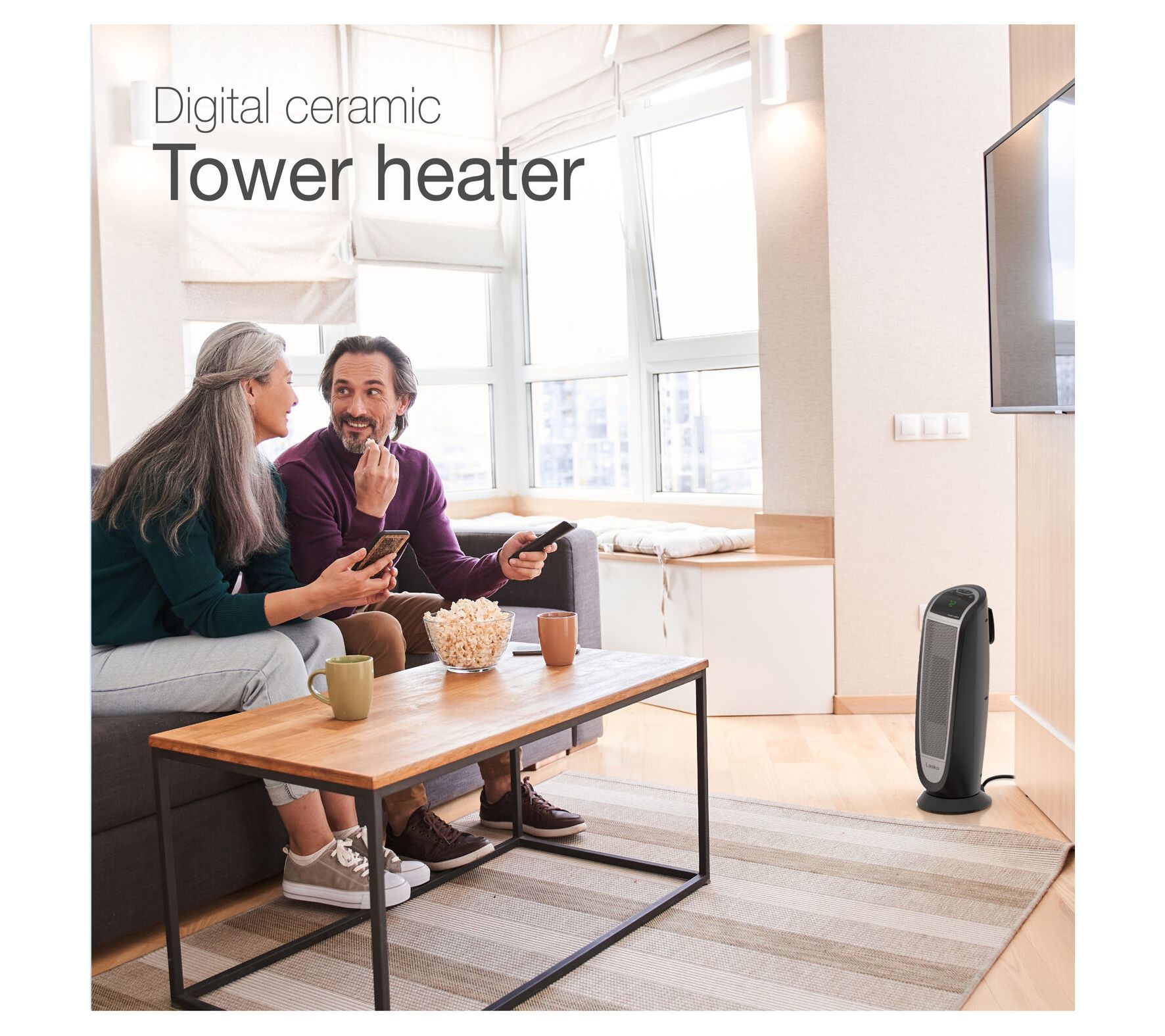 Perfect for smaller spaces, this Lasko digital ceramic tower heater offers two quiet heat settings and an adjustable thermostat to maintain your ideal room temperature. Its built-in safety features and easy-to-use controls make it a reliable choice for any room. From Lasko.