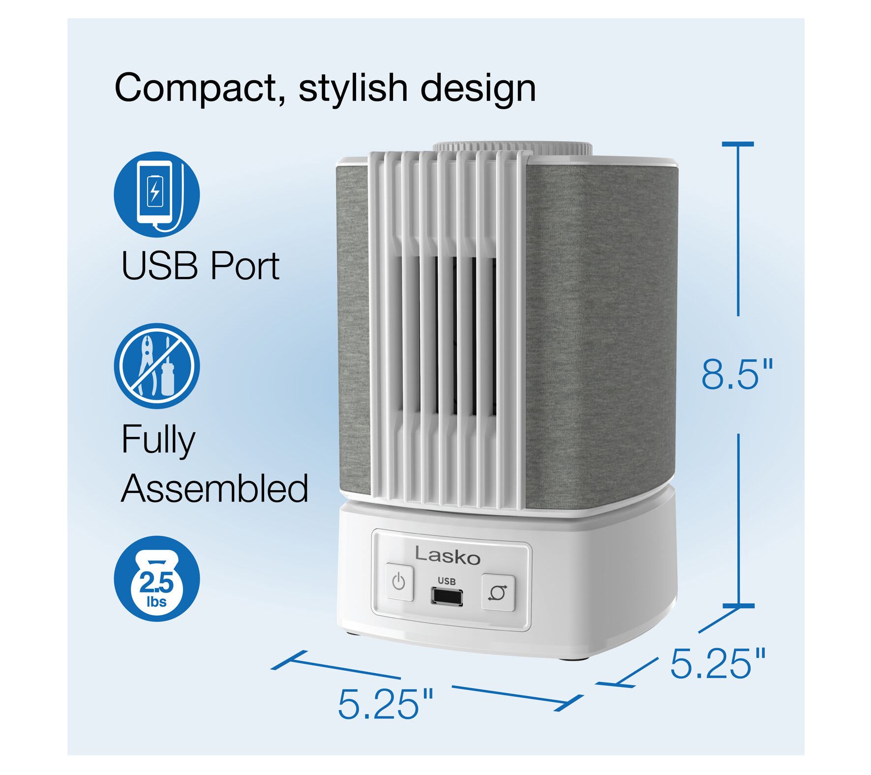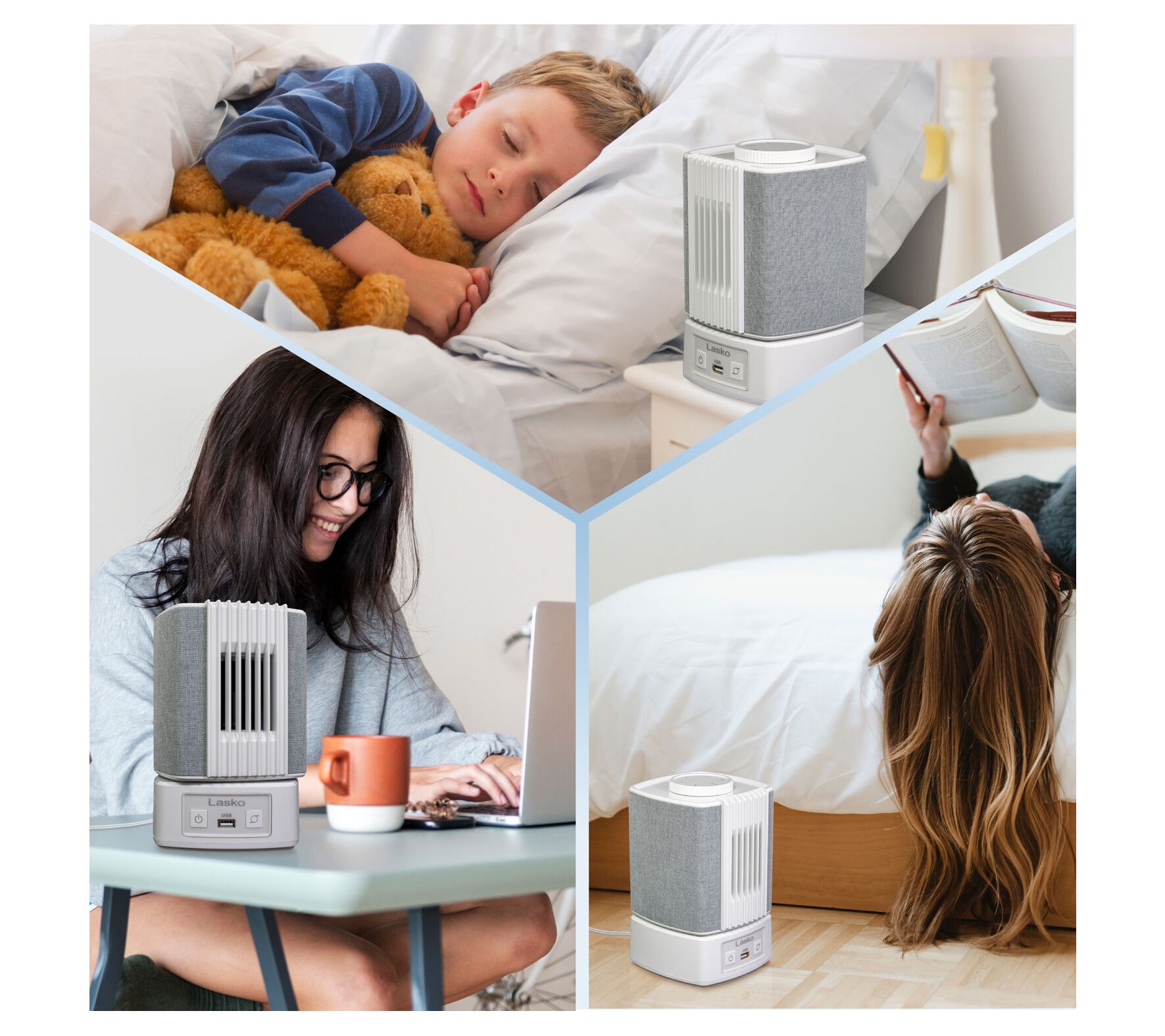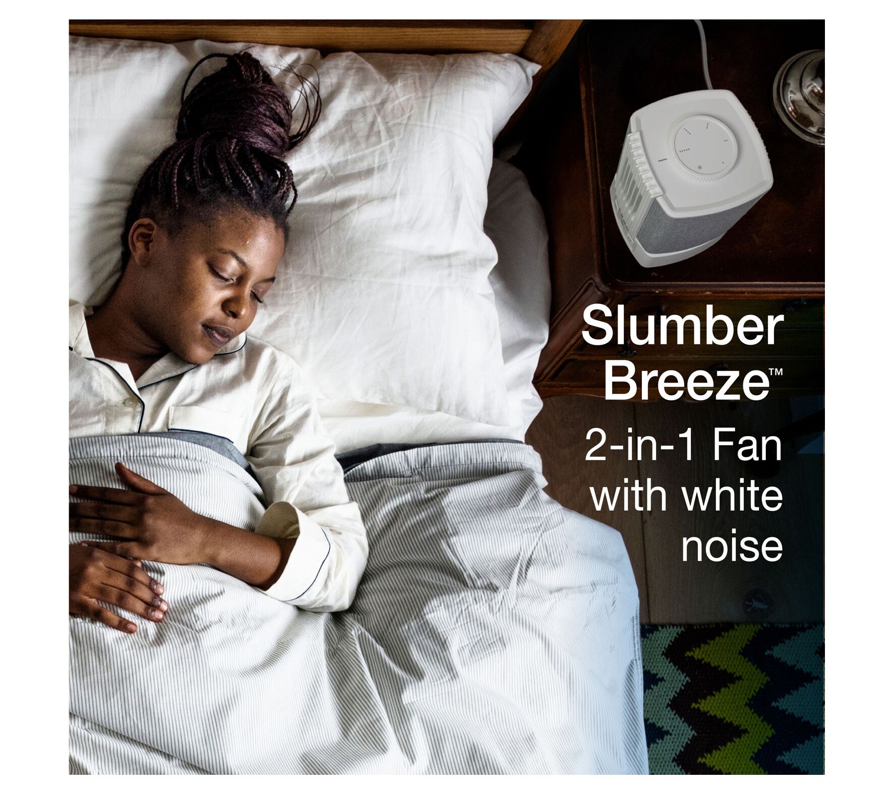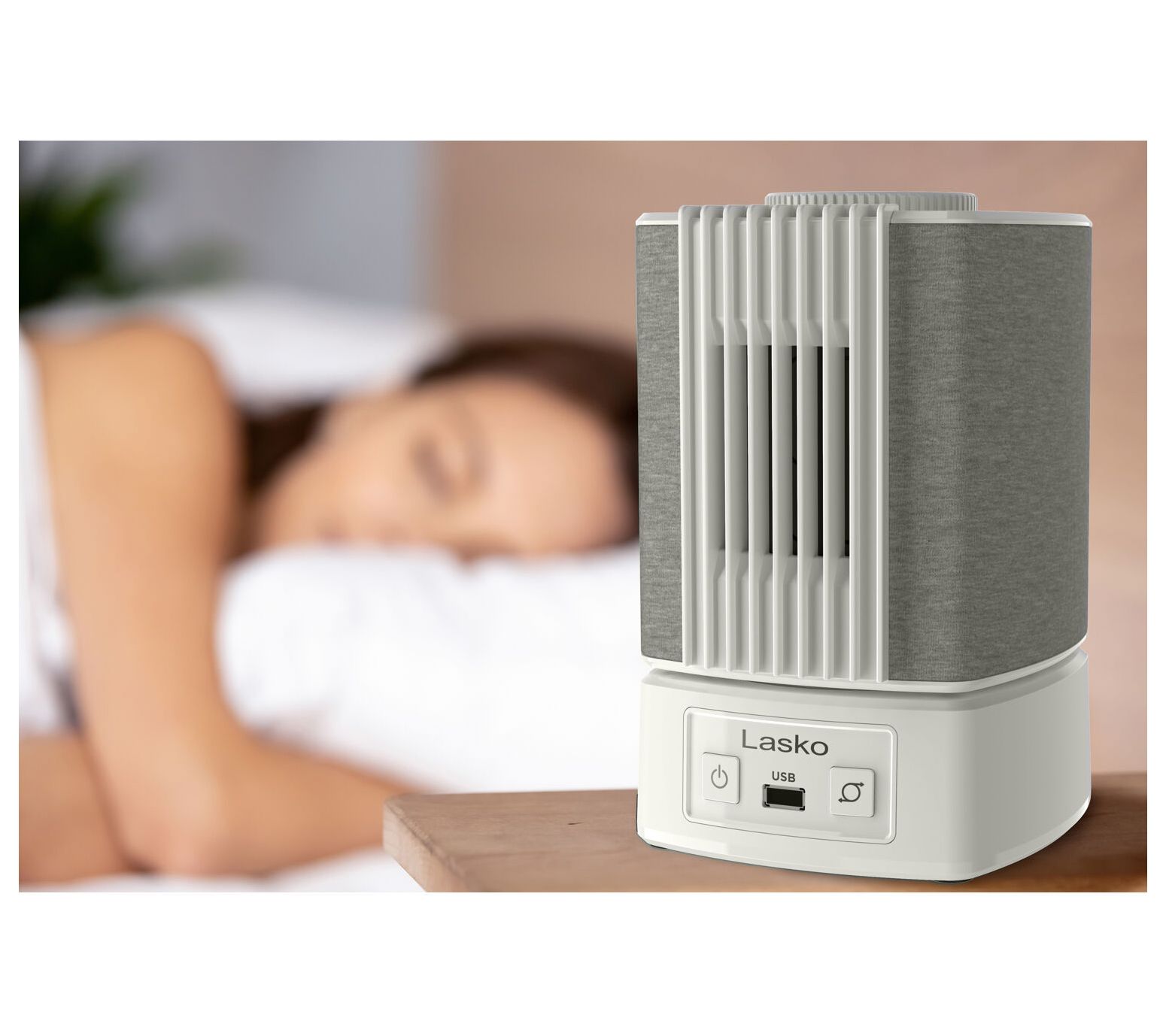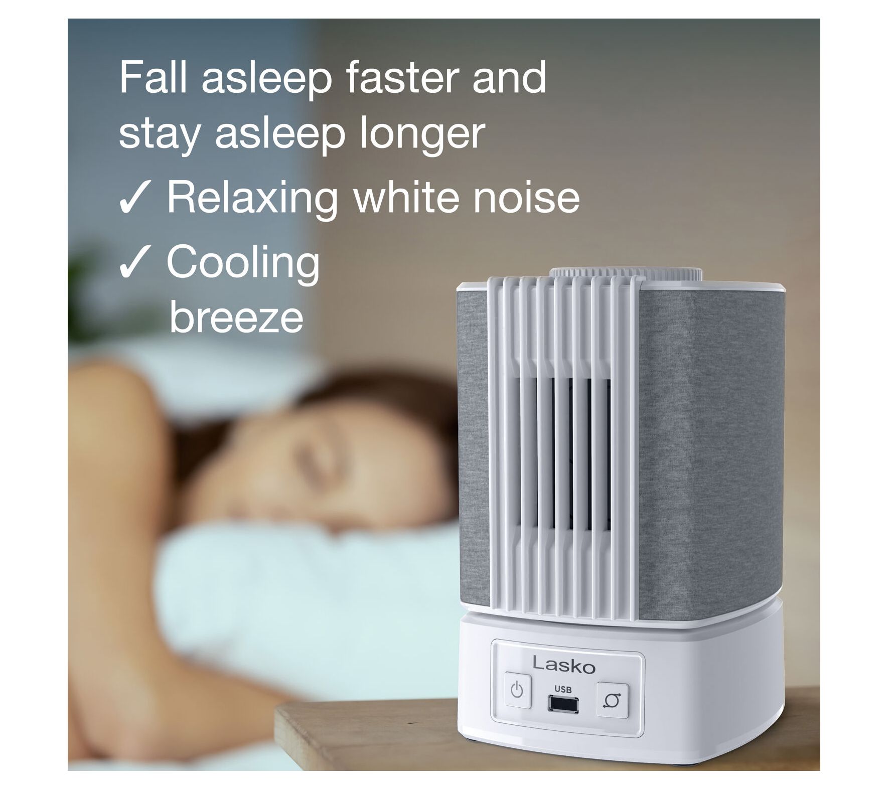 Fall asleep or focus on your next project with ease, thanks to the SlumberBreeze 2-in-1 Personal Fan. Whether you're masking distractions with customizable white noise, enjoying a cooling breeze, or both, you can tune your comfort level for bedtime, work, or study. A built-in USB port even keeps your devices charged right at your side. From Lasko.