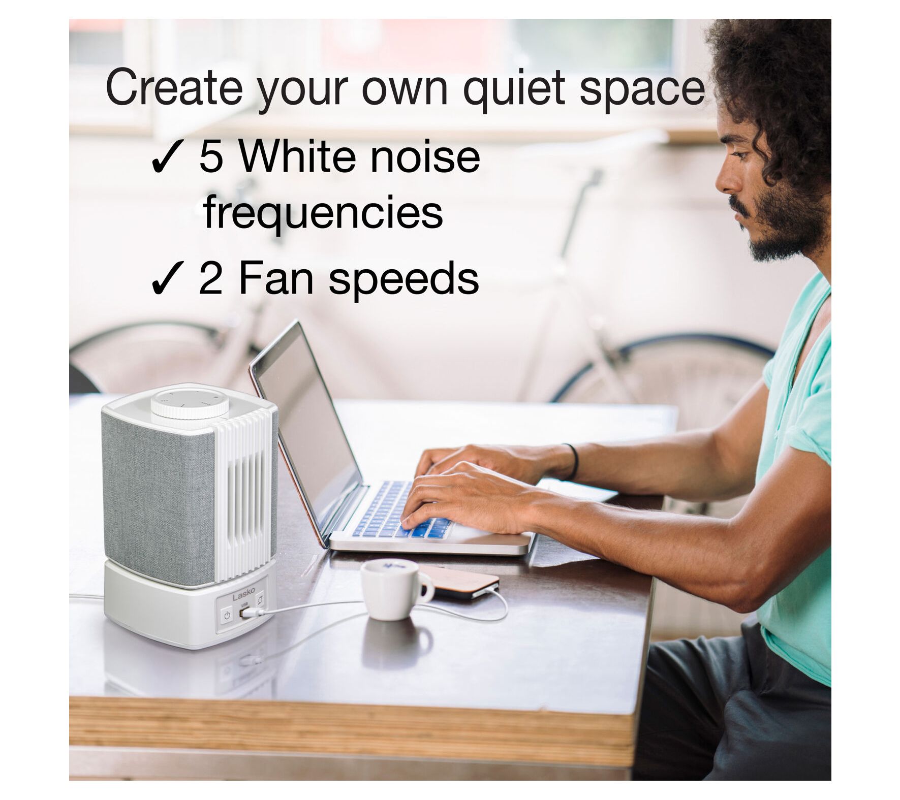 • 2-in-1 design with fan and white noise machine
