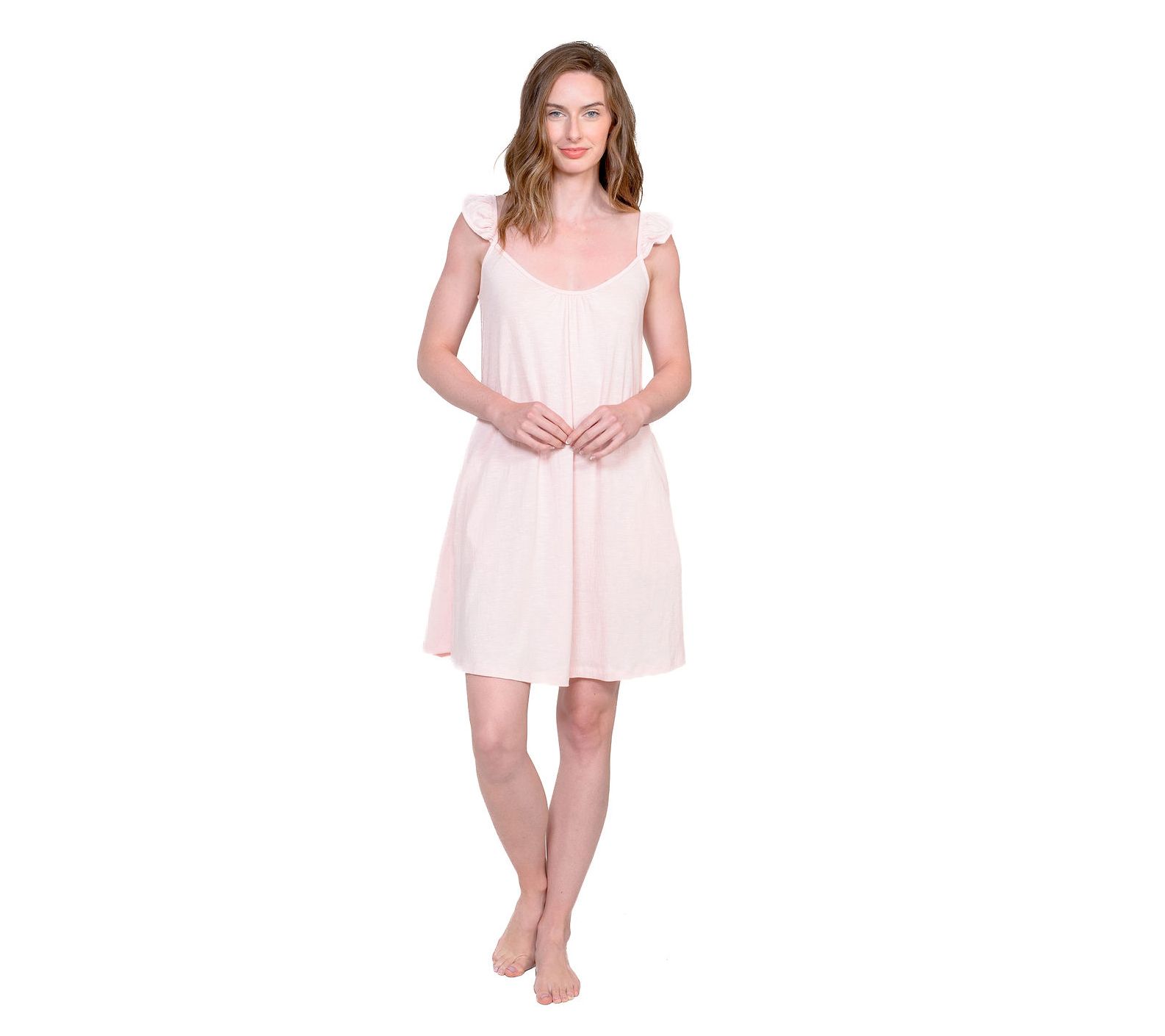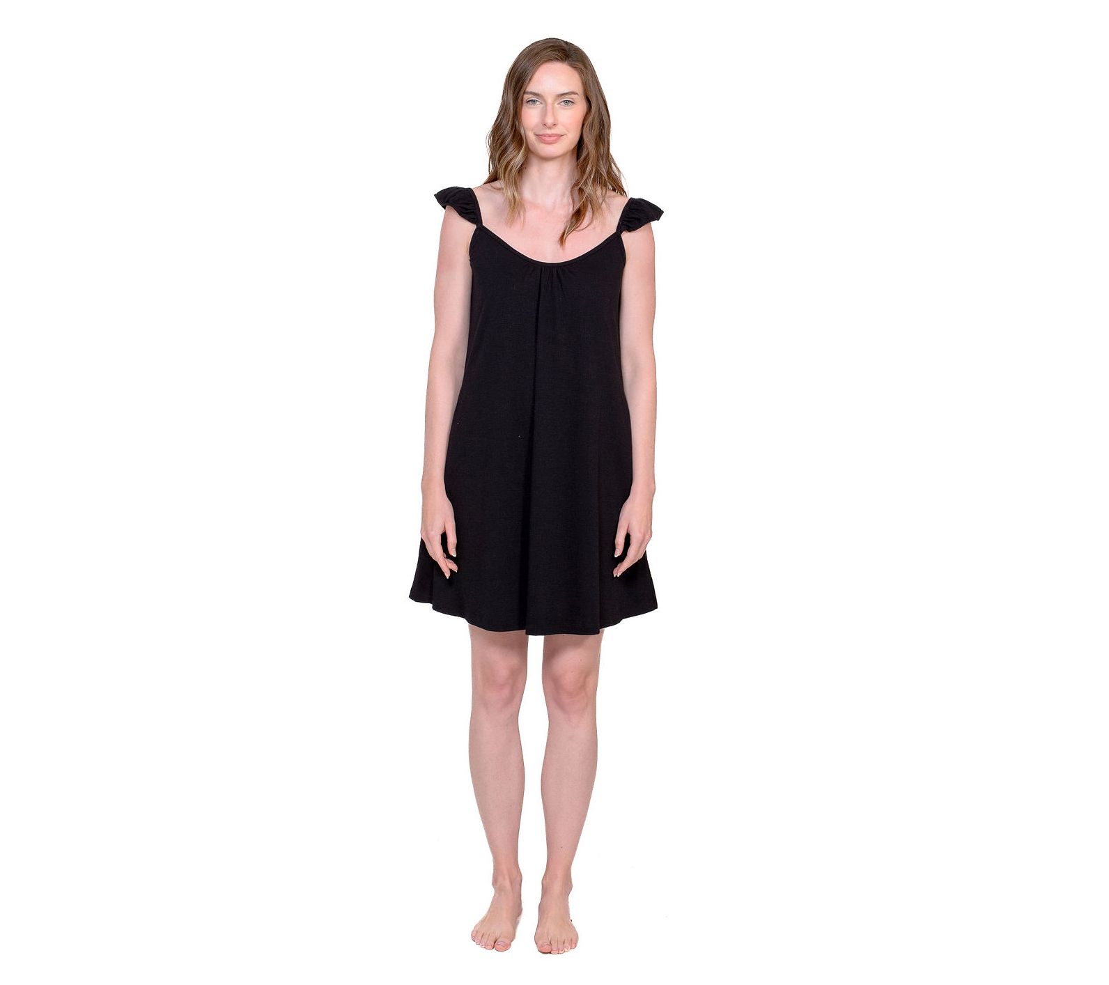 Soft mornings at home or unwinding after a long day get a stylish upgrade with this knit lounge dress, designed with playful ruffle-shoulder detail for added flair. Whether you're reading in your favorite chair or sipping coffee on a lazy Sunday, comfort meets charm in every stitch. From LATTELOVE.