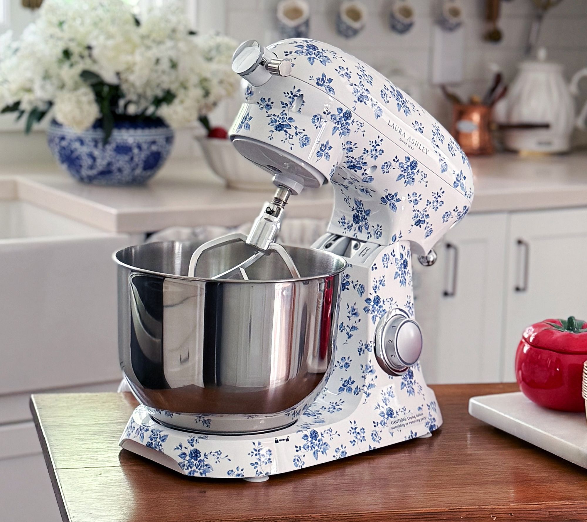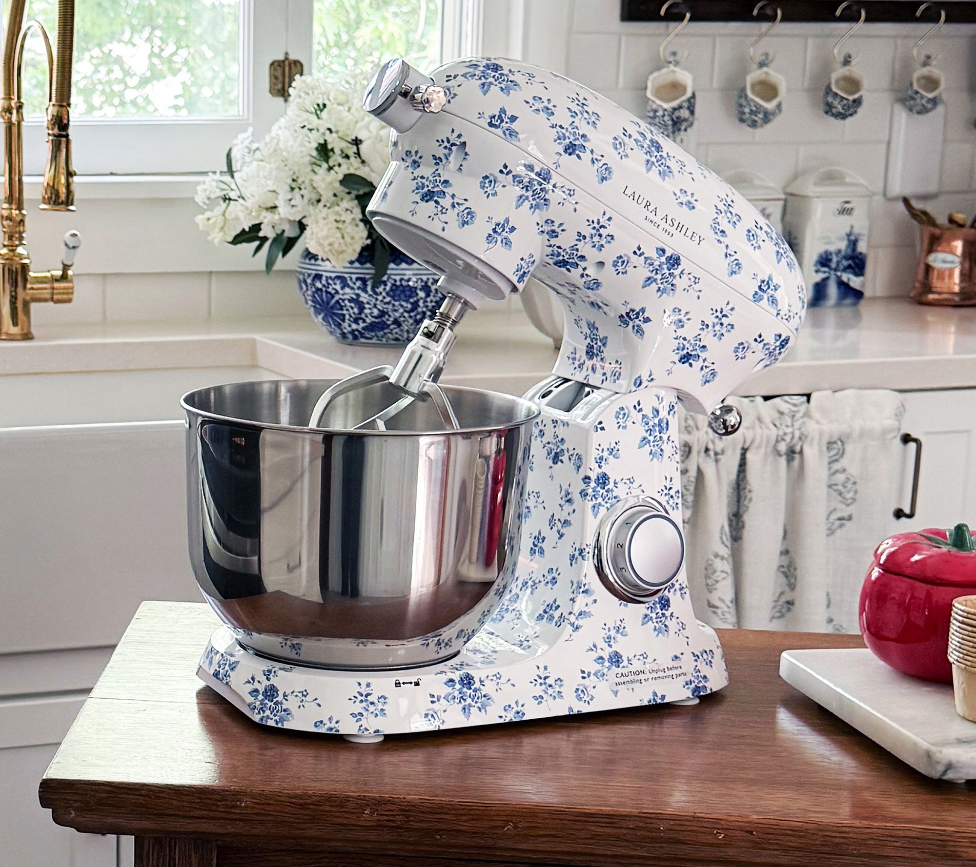 Imagine whipping up your favorite recipes with ease, thanks to the Laura Ashley 6.3-Qt Stand Mixer. Its sleek and stylish design, complete with a hand-applied China Rose designer print, adds a touch of elegance to any kitchen countertop. The powerful 1800-watt motor and six-speed settings let you tackle any culinary challenge, from kneading dough to making the perfect meringue. Cleanup is a breeze with its dishwasher-safe components. From Laura Ashley.