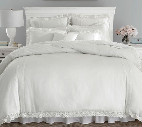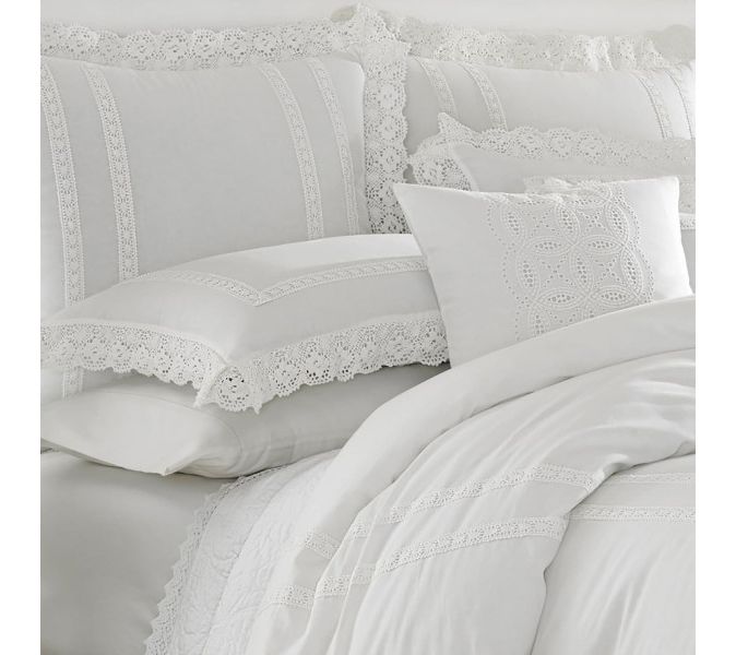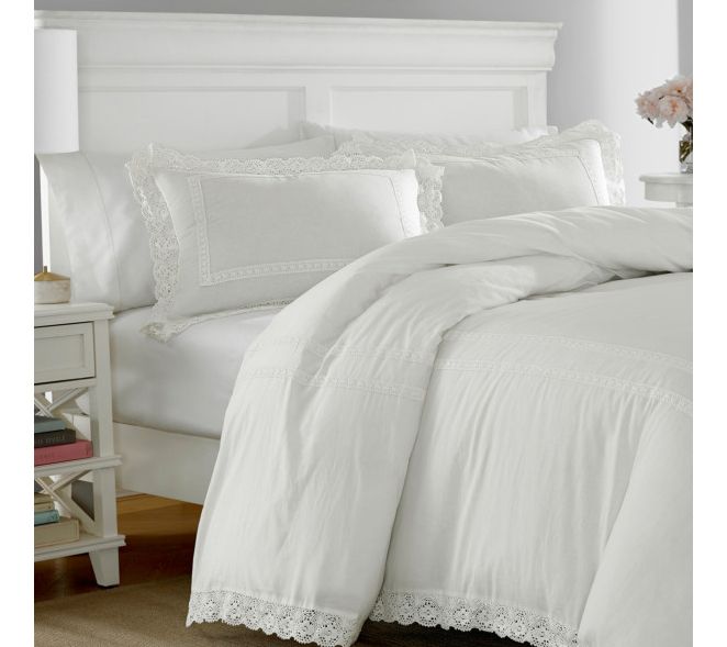 Transform your bedroom into a serene retreat with the Laura Ashley Annabella White king duvet cover set. Adorned with delicate crocheted lace trim, this classic design brings a touch of romance and modern femininity to your space. From Laura Ashley.
