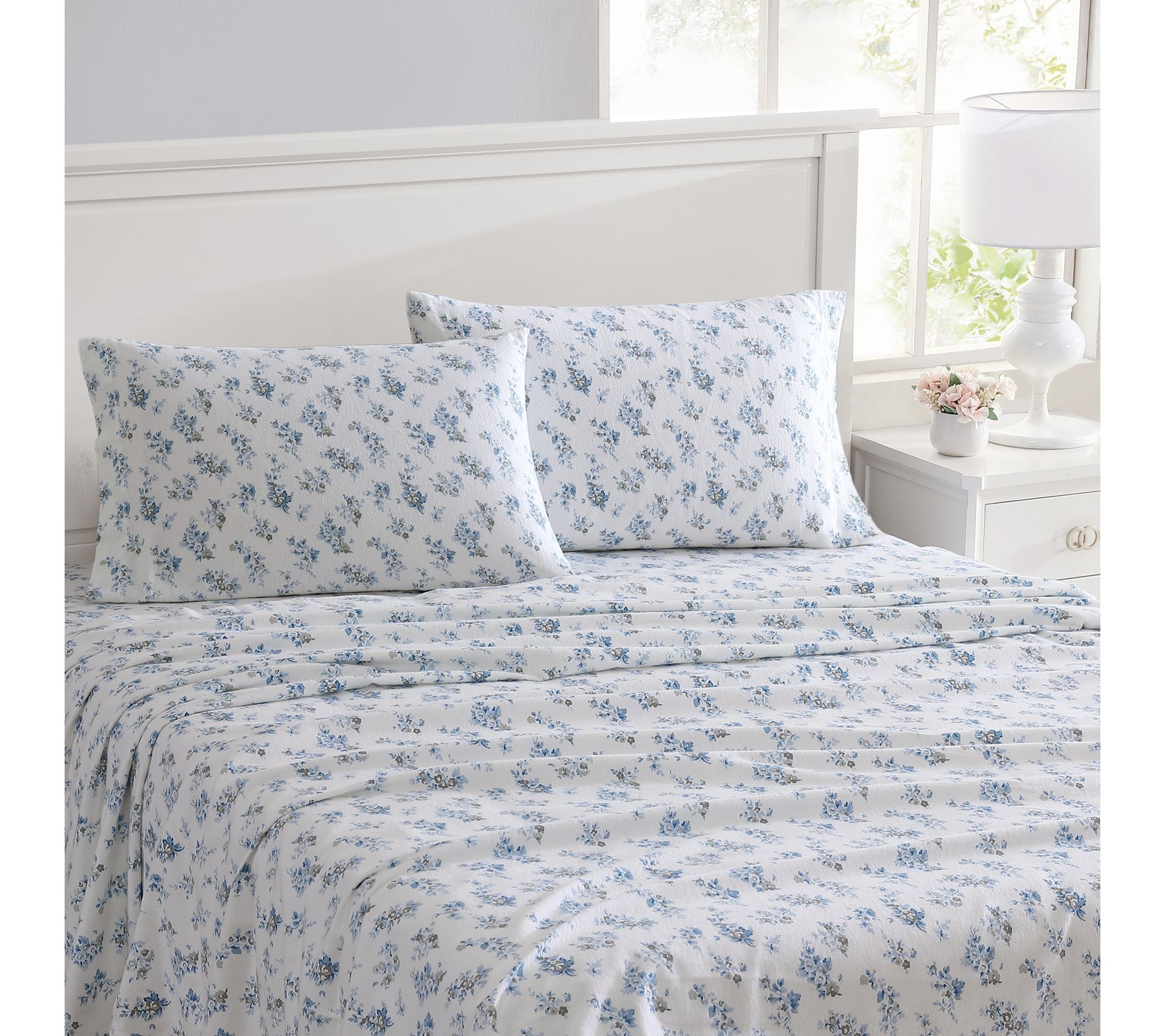 Laura Ashley Audrey Blue King Flannel Sheet Set