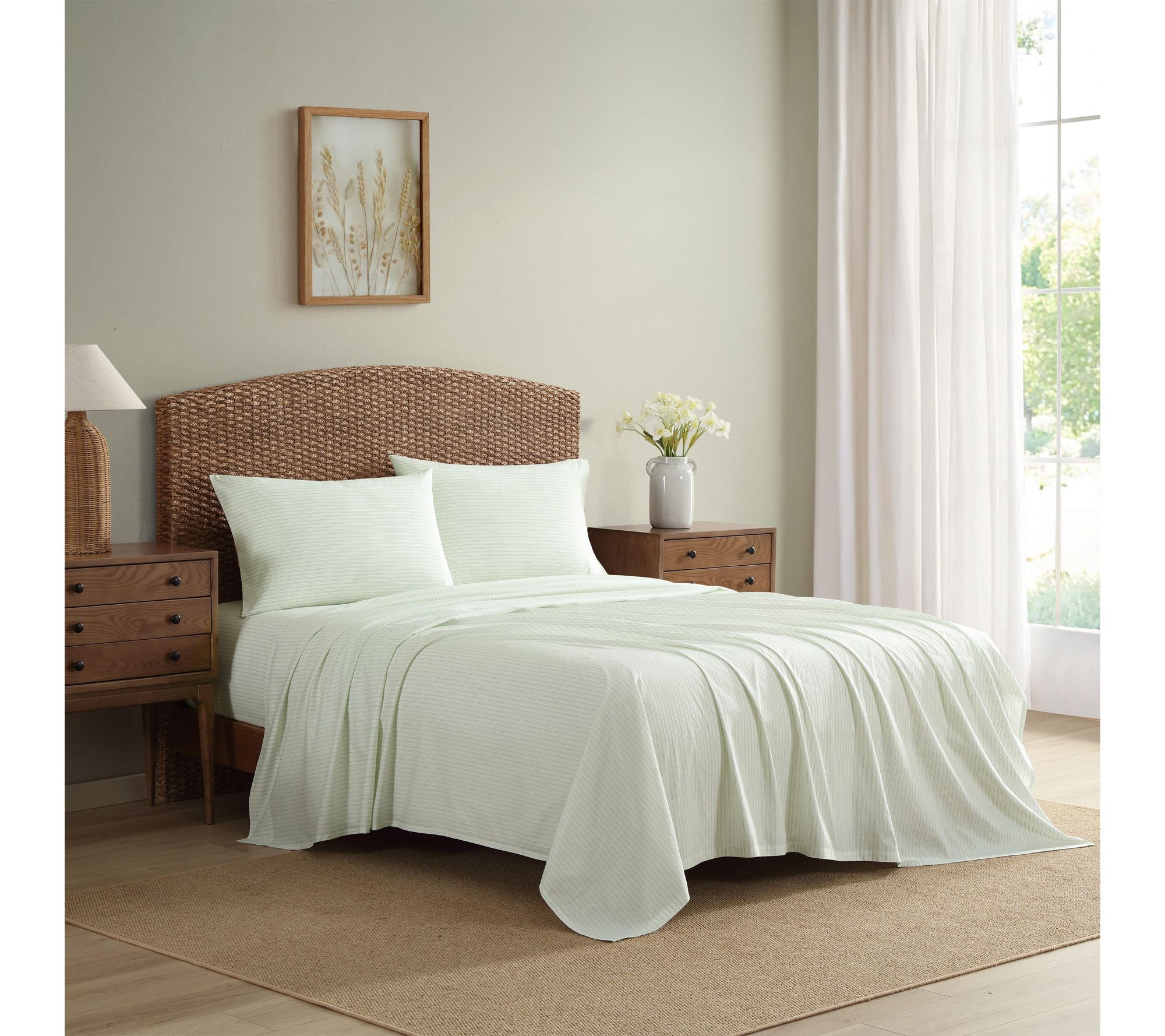 Update your bedding for a touch of everyday elegance with this Queen sheet set. Soft 100% cotton with a crisp 200 thread count perfectly complements the subtle green Bedford Skinny Stripe pattern, infusing your room with serene style and effortless comfort. Enjoy restful nights and a smooth, tailored fit ideal for classic, farmhouse, or modern spaces. From Laura Ashley.