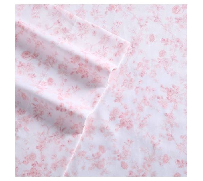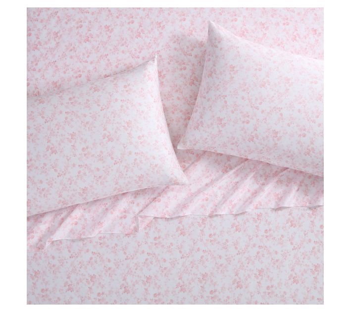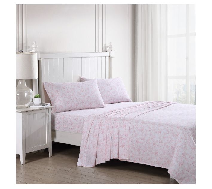 Add a touch of vintage charm to your bedroom with the Laura Ashley Bella pink king sheet set. This set features a silky-smooth cotton sateen weave and a delightful floral pattern that pairs perfectly with solid or printed bedding. From Laura Ashley.
