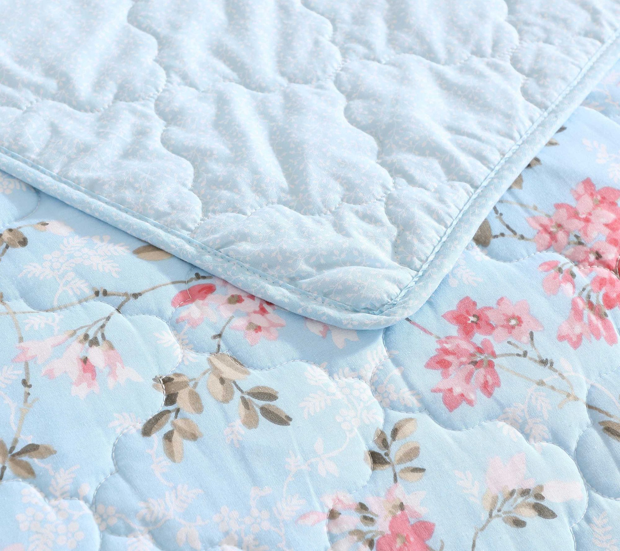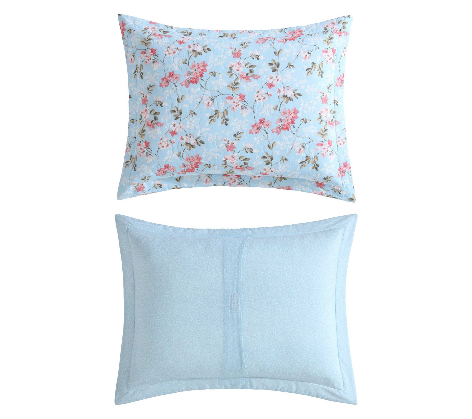 Turn your bedroom into a calming oasis with this quilt sham set, featuring delicate floral patterns in soothing shades of blue and pink. Whether layered over your favorite sheets or displayed on its own, this lightweight cotton quilt brings softness and effortless style, making it easy to unwind after a long day. From Laura Ashley.