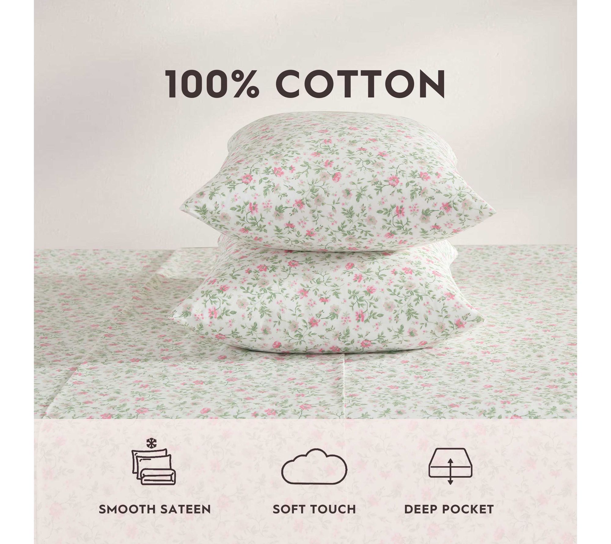 Add a charming romantic touch to your bedroom with Laura Ashley's full sheet set, featuring timeless florals in stunning pink and green. These sheets are cool to the touch, lightweight, and become softer with each wash, ensuring your comfort night after night. From Laura Ashley.