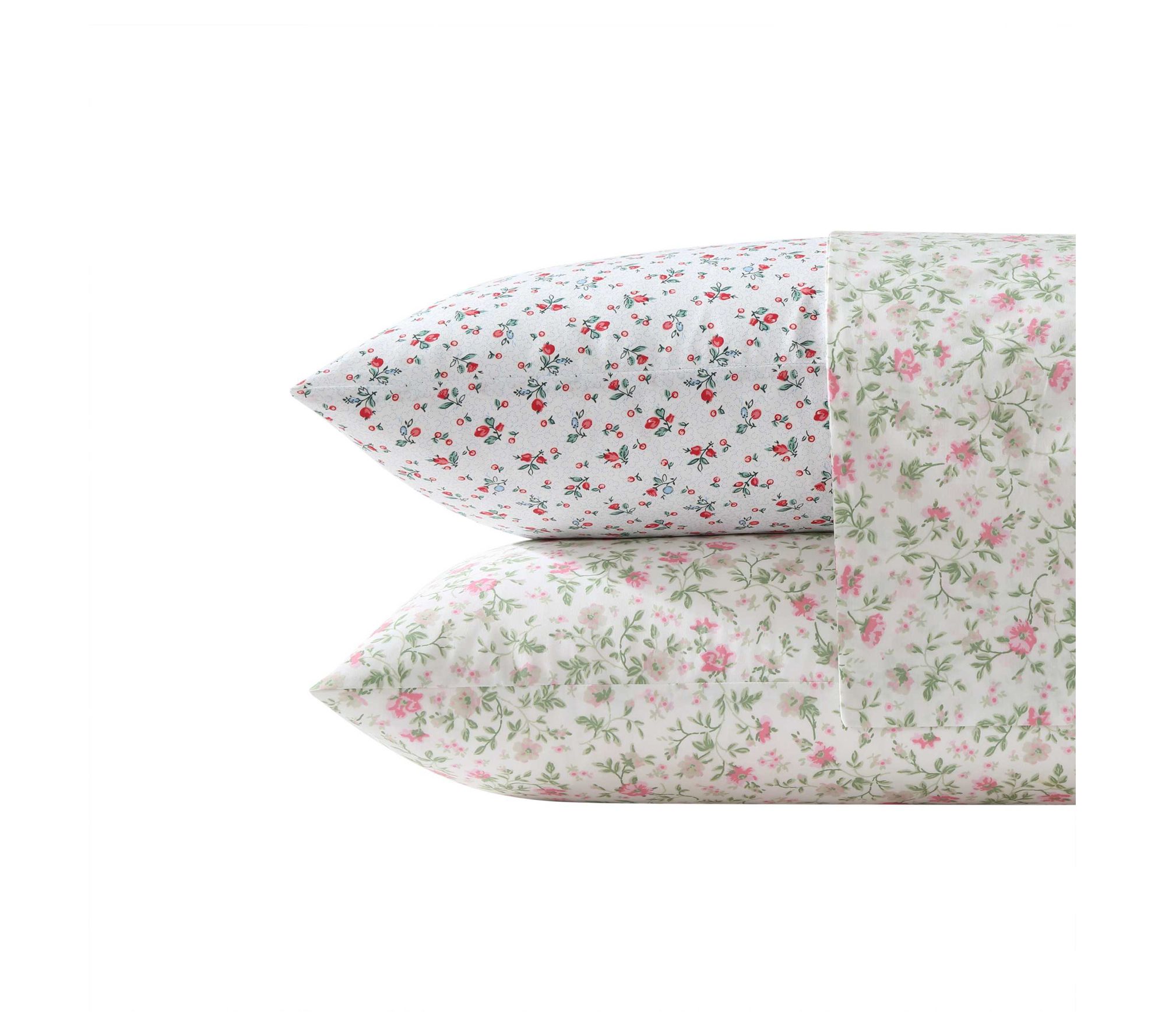Add a charming, romantic touch to your bedroom with these Laura Ashley printed percale sheets. The timeless floral patterns, in beautiful color palettes, are perfect to mix and match with your existing comforters or duvet covers, bringing a splash of color to your decor while ensuring a cozy, long-lasting comfort that becomes softer after every wash. From Laura Ashley.