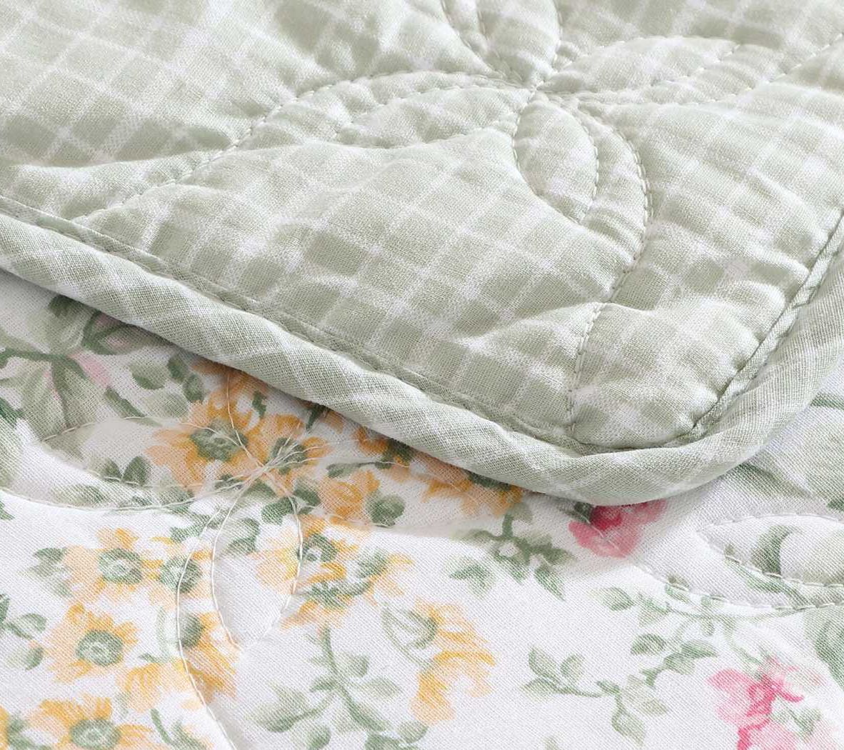 Invite a sense of tranquility into your bedroom with this Laura Ashley Bramble Floral Pink quilt set, designed to provide year-round comfort with its soft, all-cotton construction and timeless floral pattern. The medium weight is ideal for layering, giving you options for cozy nights or lighter bedding during warmer months. From Laura Ashley.