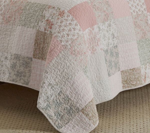 Update your bedroom decor with the Celina quilt set from Laura Ashley. The patchwork design features a combination of floral prints, stripes, and paisleys in a fresh palette of pink, sage, and ivory. Prewashed for added softness, this quilt set becomes cozier with each wash. From Laura Ashley.