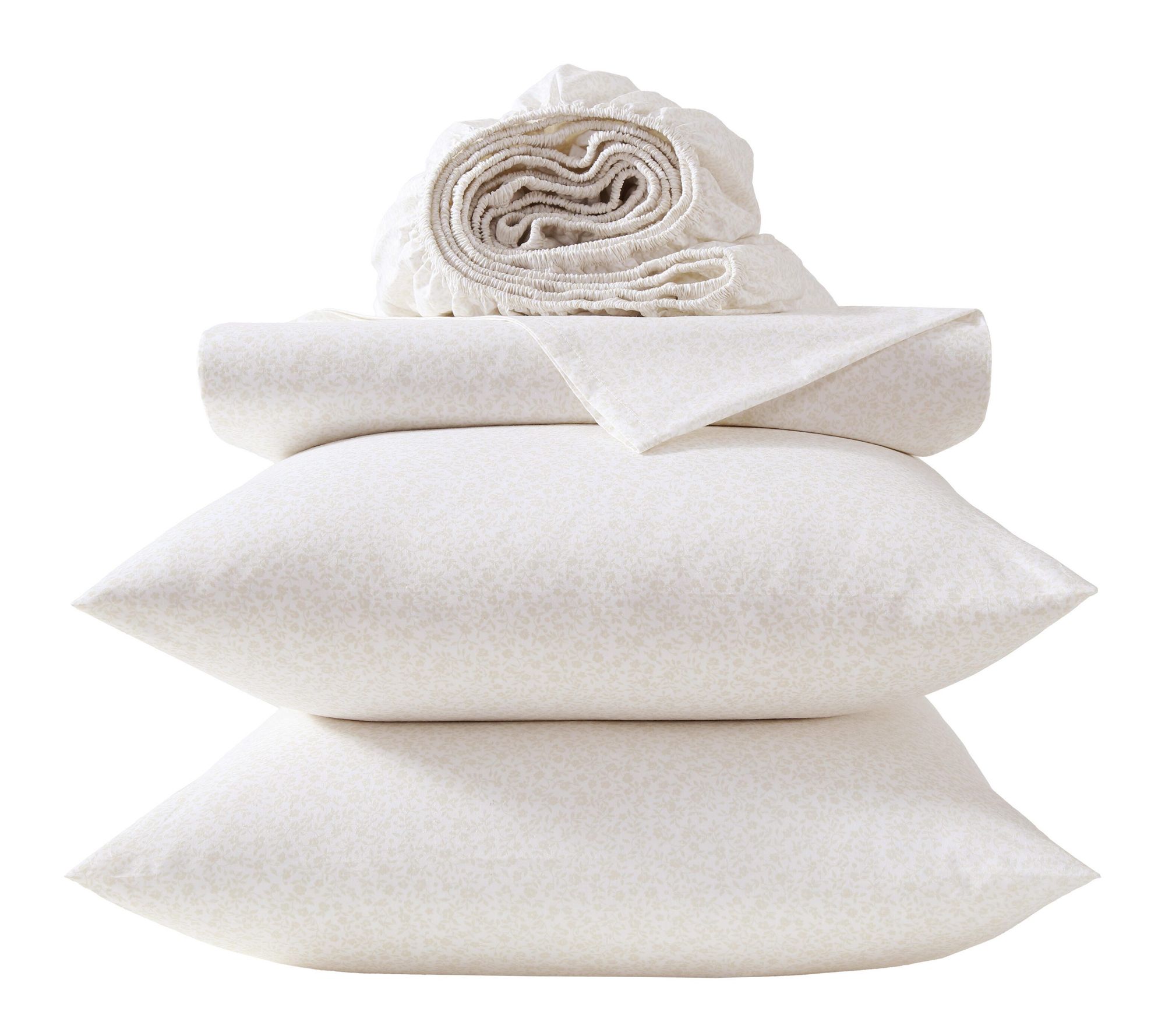 Bring the charm of a timeless English garden to your bedroom with this Laura Ashley Chelsie Vine sheet set. The soft beige floral print on crisp cotton percale feels as inviting as it looks, offering an airy comfort that enhances both classic and modern spaces. Experience dreamy sleep surrounded by elegant design and lasting comfort. From Laura Ashley.