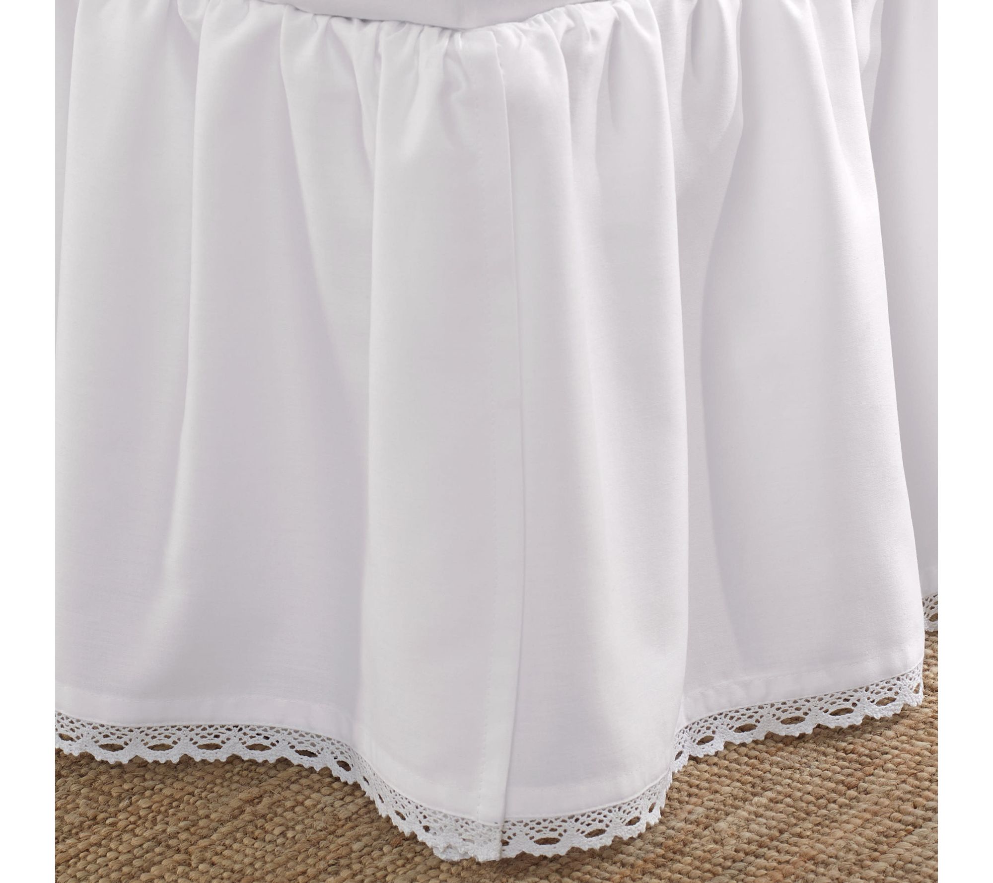 Finish your bed with a look of charm and elegance with the Laura Ashley Ruffle Bed Skirt. This accessory is decorated with a ruffled edge using soft cotton and a crochet accent. Available in a crisp white color. From Laura Ashley.