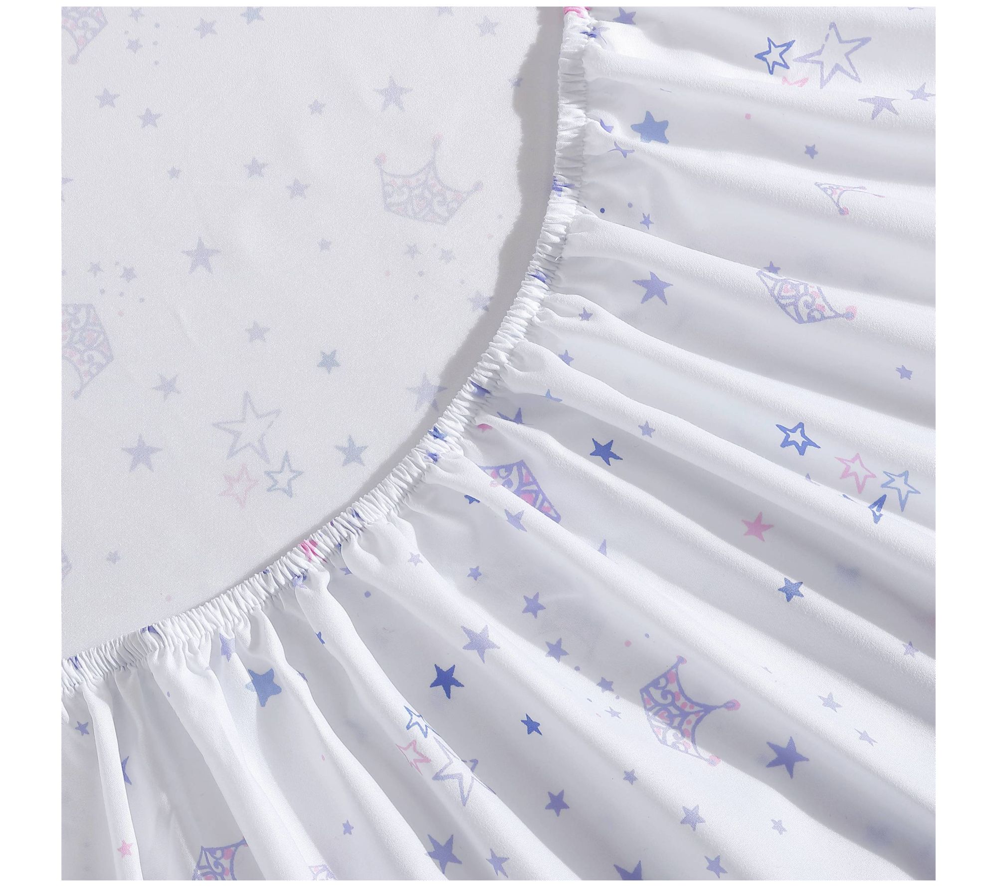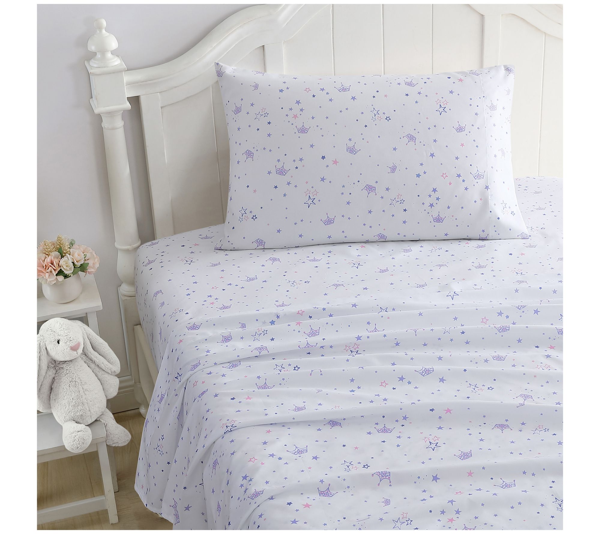 Transform your child's bedroom into a magical haven with the Laura Ashley Kids Dancing Stars Full sheet set. Featuring a whimsical white background adorned with purple stars and crowns, this delightful set adds a touch of royalty to bedtime. From Laura Ashley.