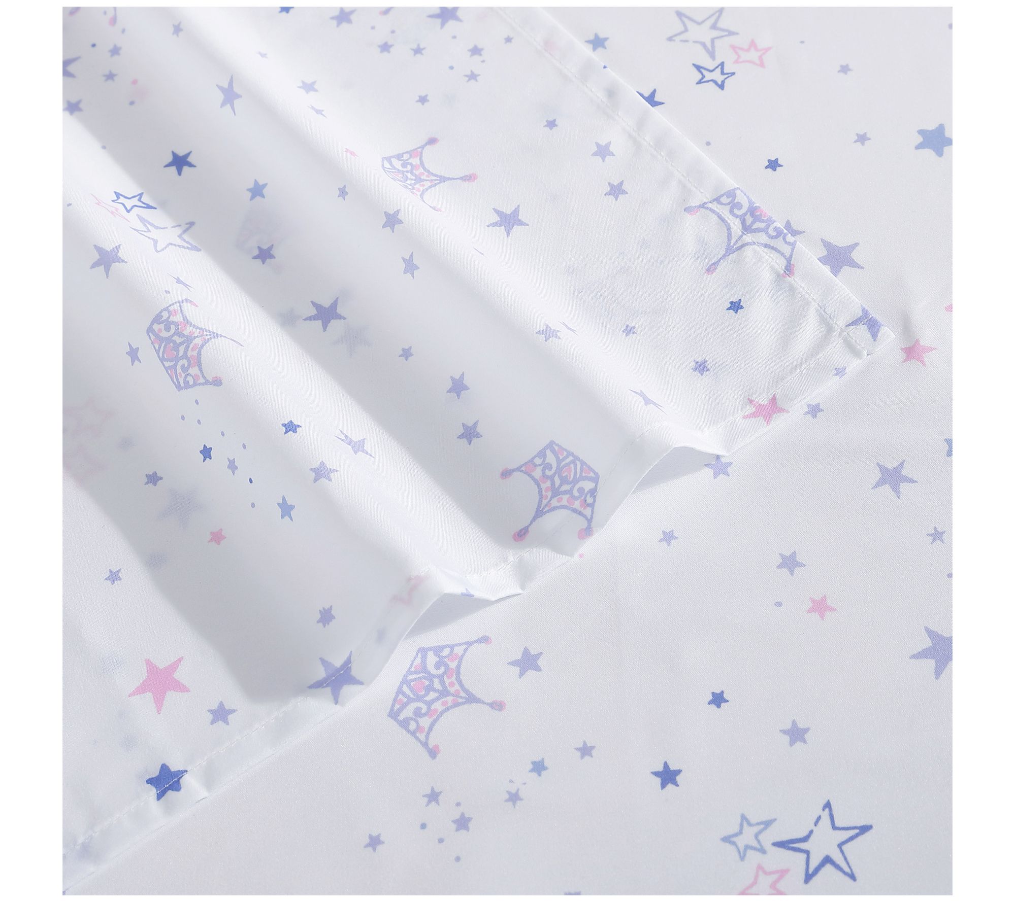 Introduce your child to a royal adventure with the Laura Ashley Dancing Stars Twin XL sheet set. This delightful sheet set features whimsical stars and crowns in a regal shade of purple on a white background, creating a magical bedtime experience, perfect for elevating your child's room decor or complementing their current setup. From Laura Ashley.