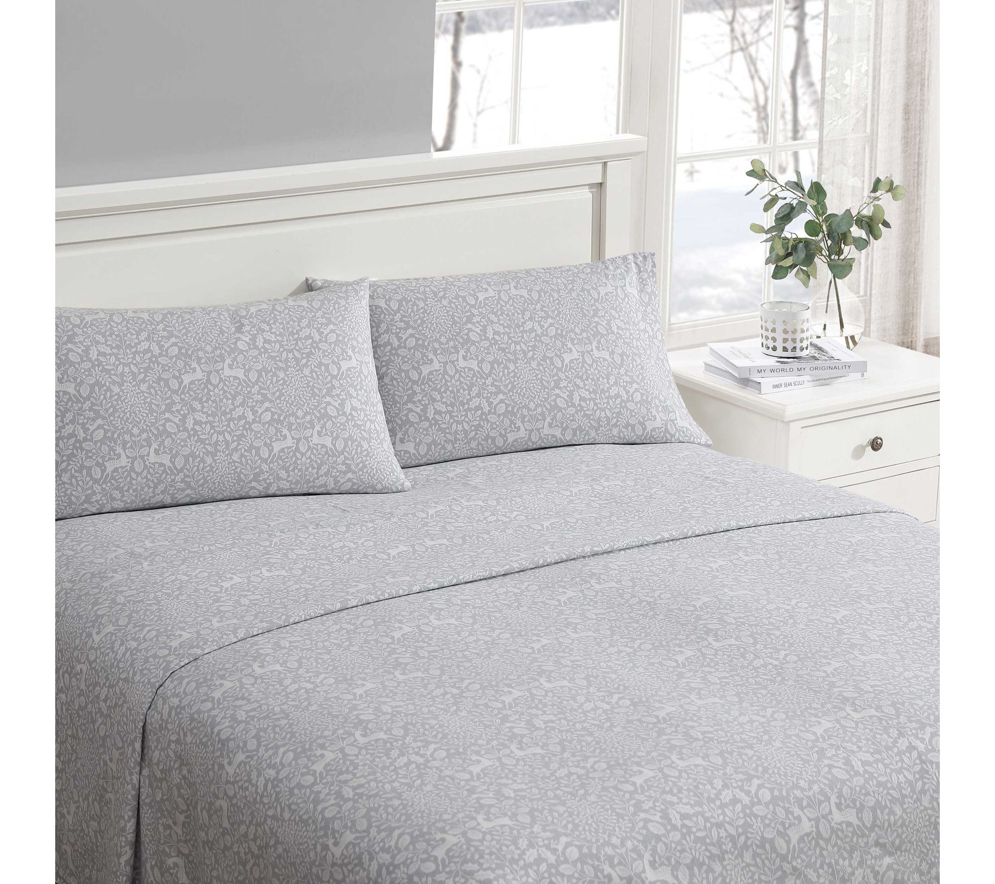 Laura Ashley Deer Dance Grey King Flannel SheetSet