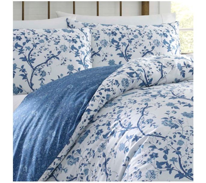 Refresh your bedroom with the Laura Ashley elise navy king comforter bonus set, featuring a textured floral print in dark and light blue shades. This elegant set reverses to a dark blue ground with a light blue floral pattern, making it a versatile addition to your decor. From Laura Ashley.