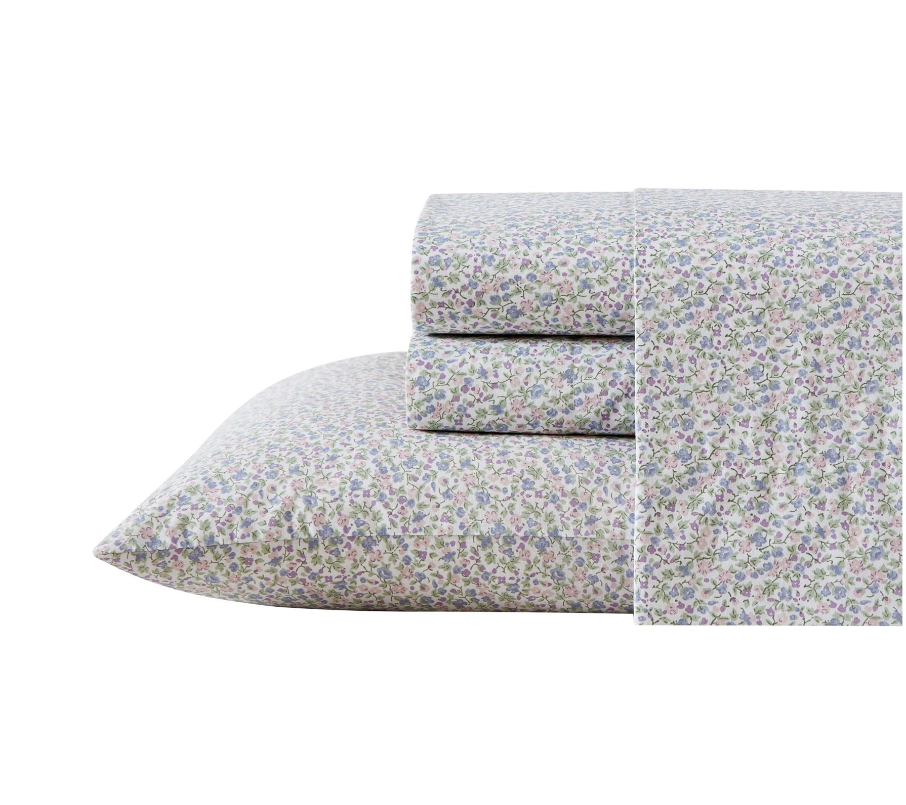Add a touch of elegance to your bedroom with the Laura Ashley Emogene purple cotton twin sheet set. Featuring a timeless floral pattern, these sheets become softer with each wash. From Laura Ashley.