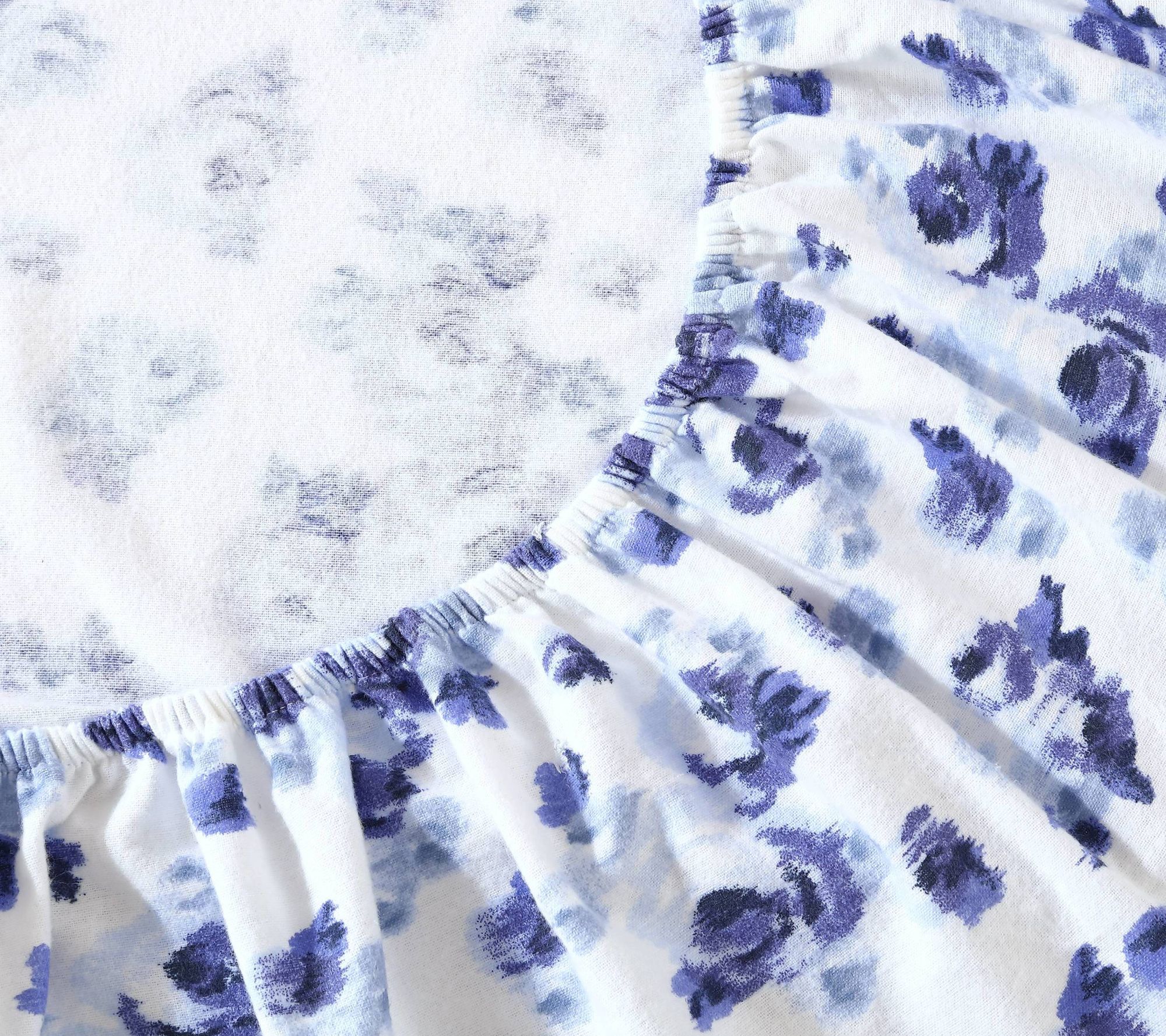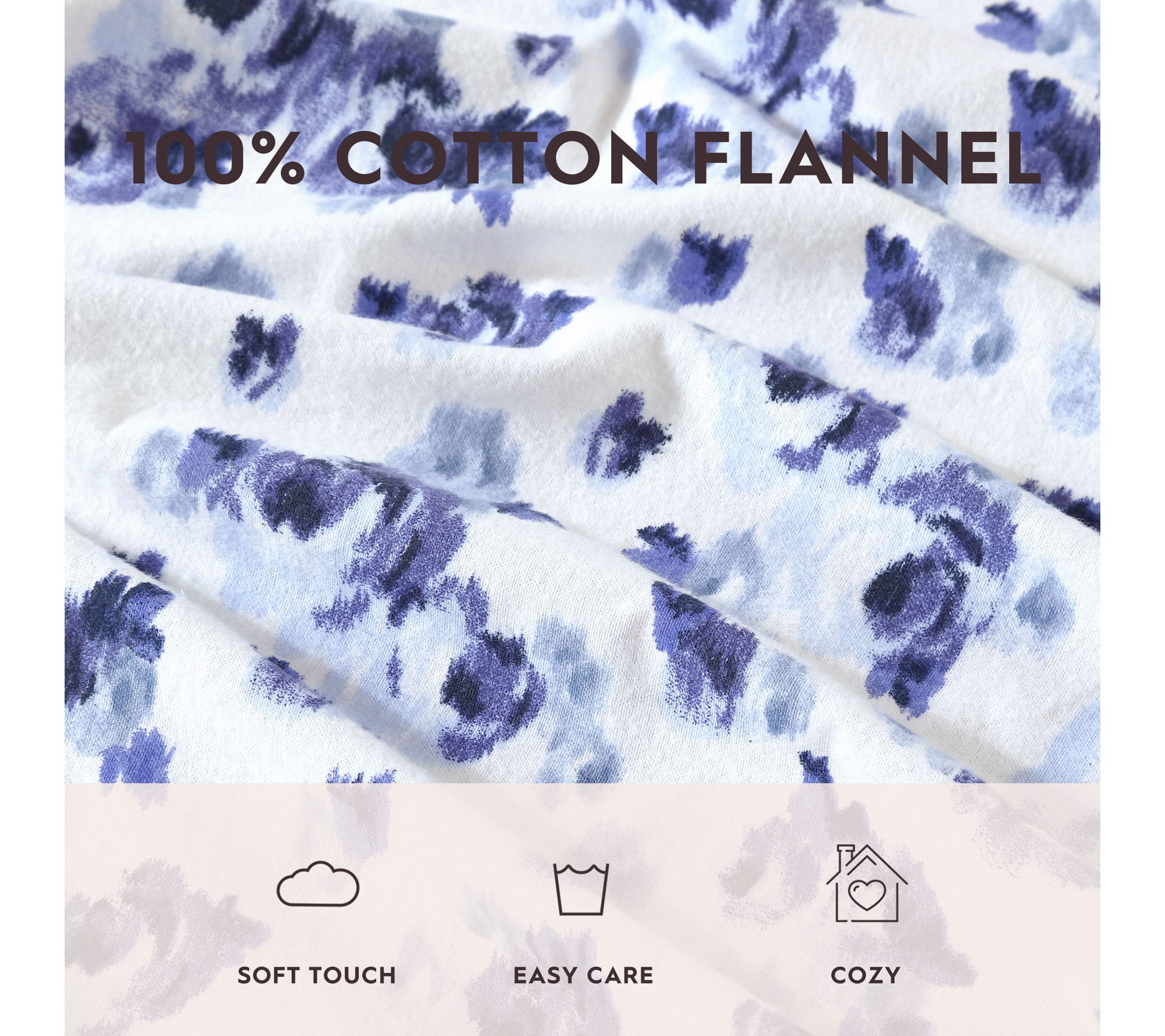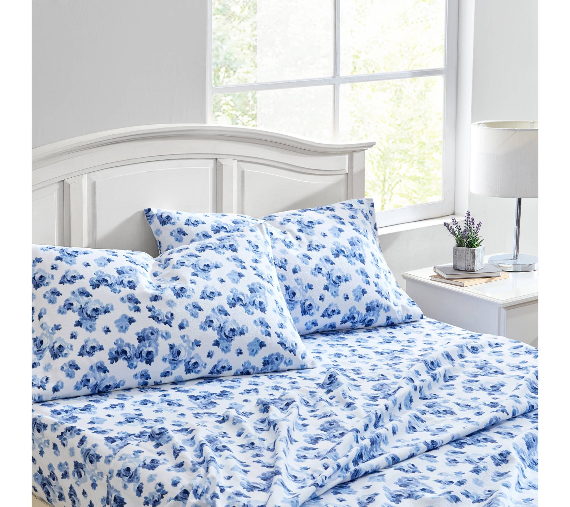 Laura Ashley Emelisa Blue Twin Flannel Sheet Set