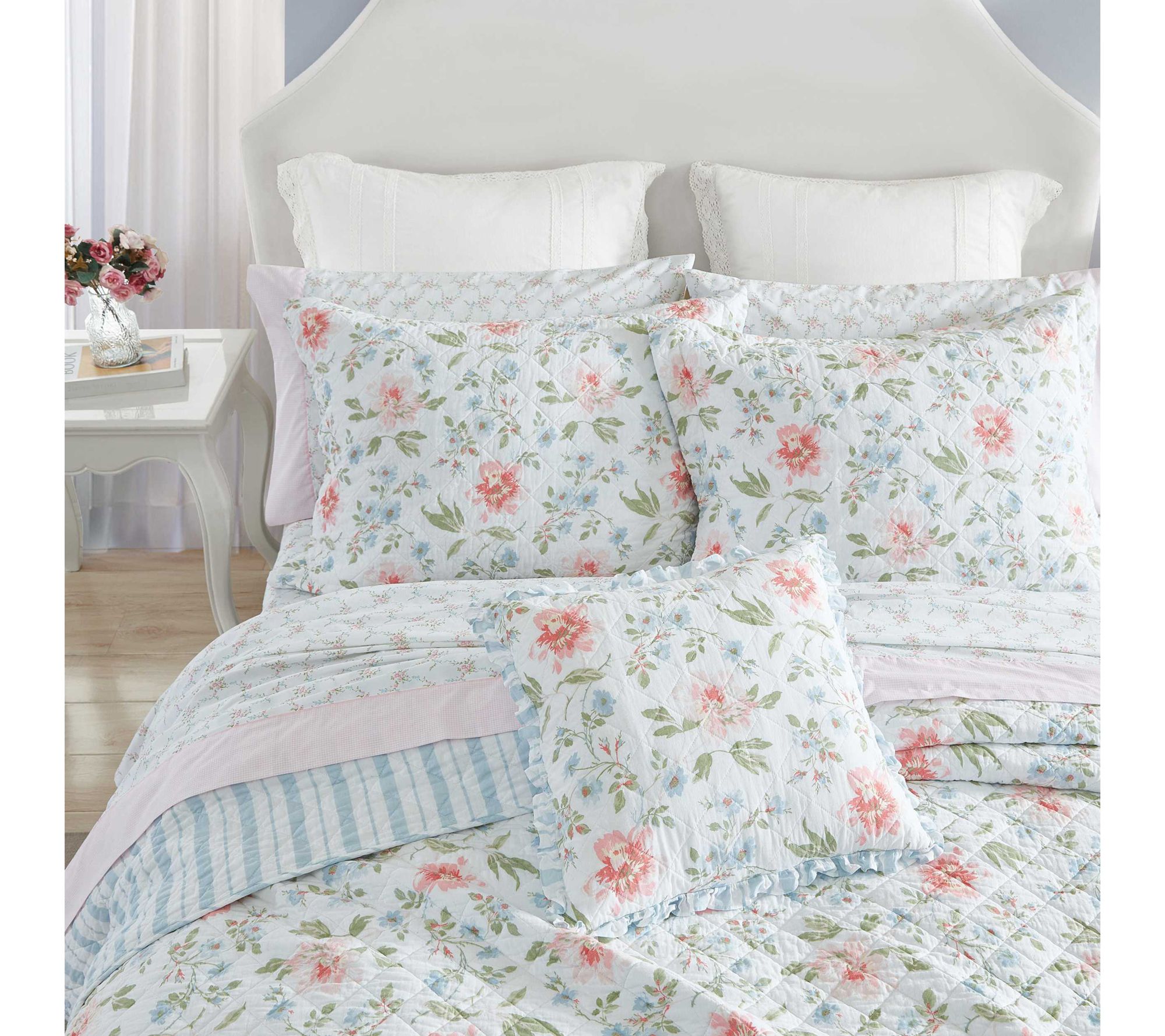 Outfit your living space in springtime charm all year long with the Emilie quilt set. Featuring a lovely allover floral print, this cotton bedding ensemble brings a breath of fresh air to your bedroom decor. From Laura Ashley.