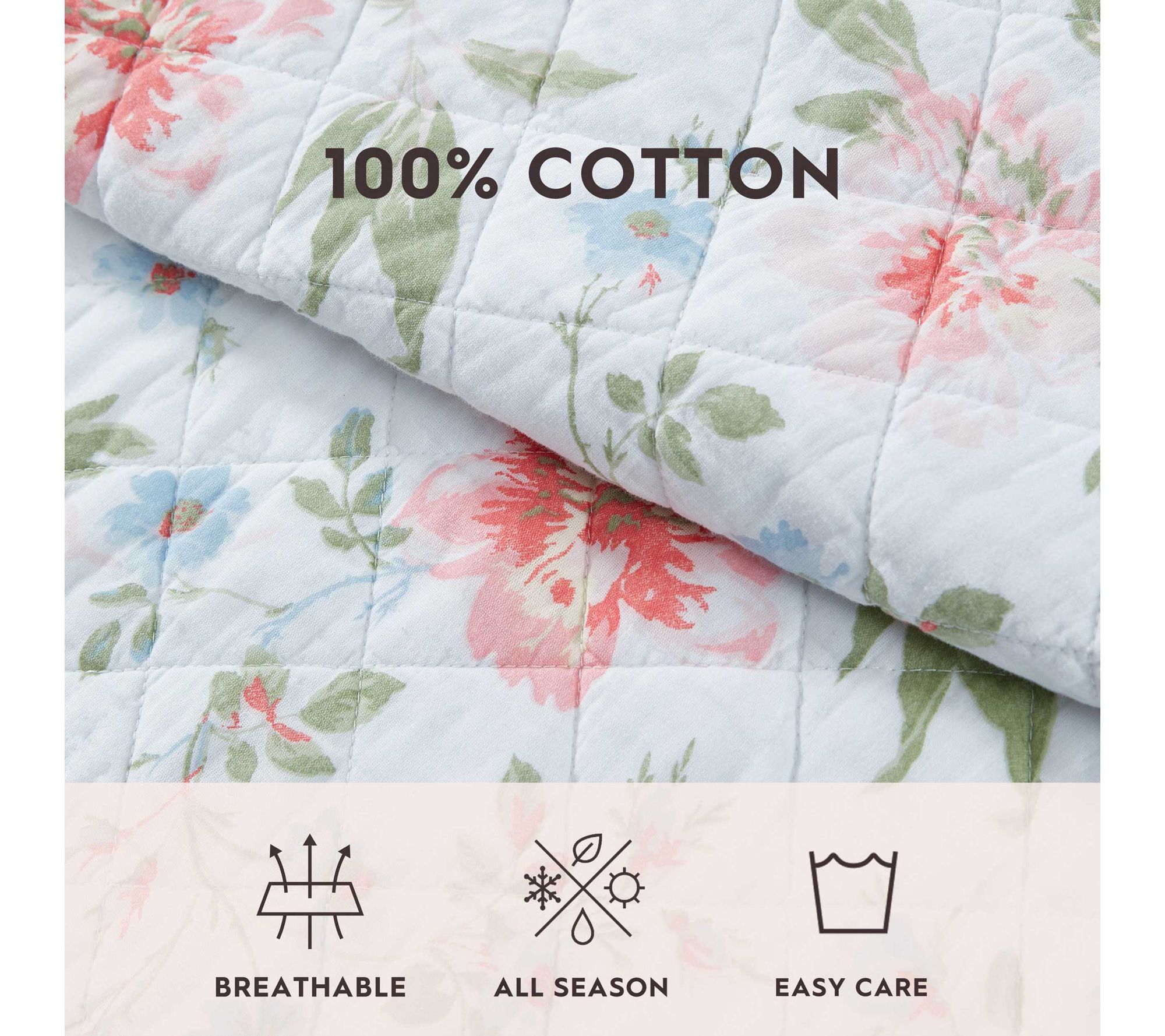 • Includes quilt, two king shams, and square pillow; additional items (shown) not included