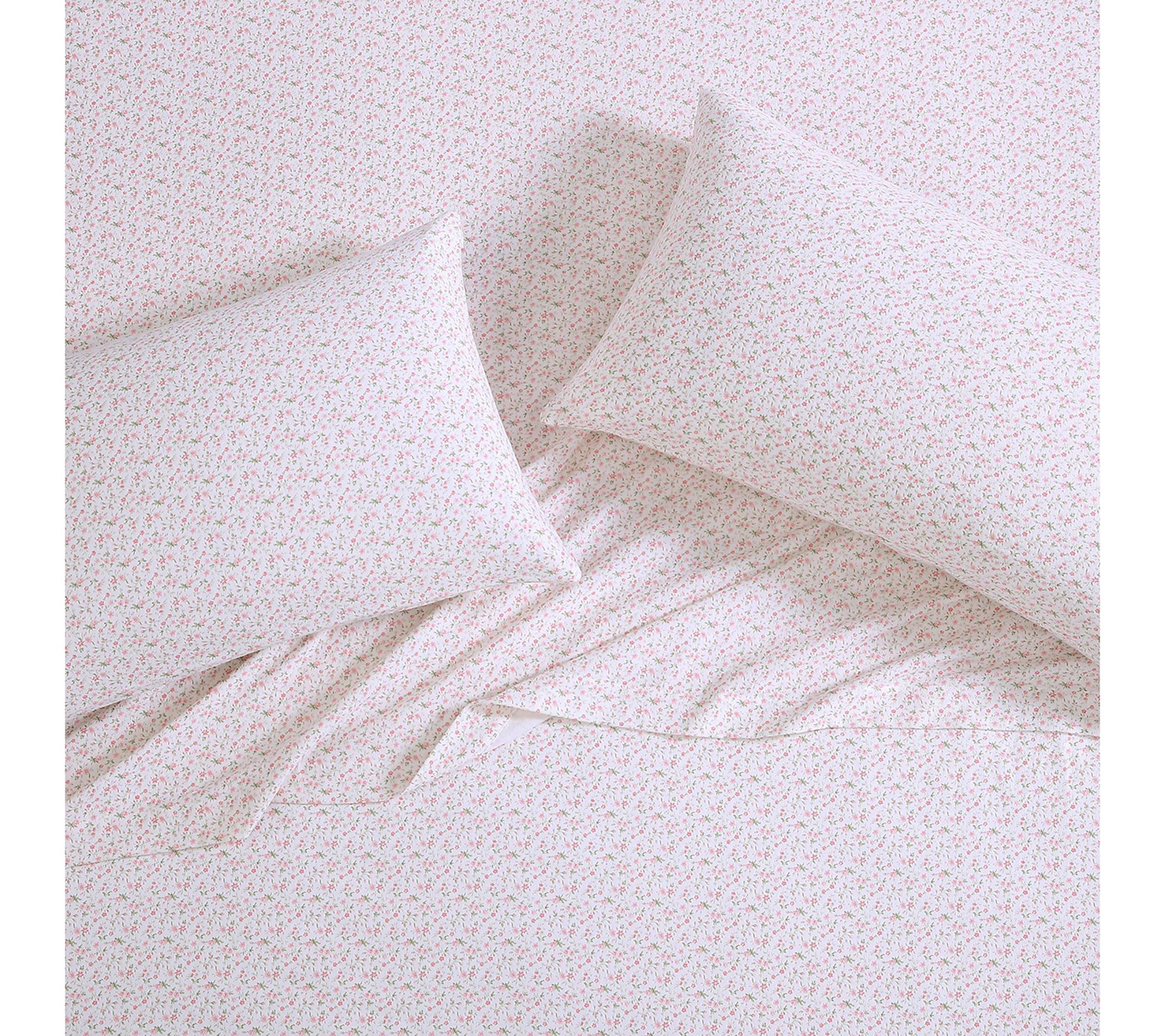 Refresh your bedroom decor with the Laura Ashley Evie Soft Pink Twin flannel sheet set. These 100% cotton sheets provide ultimate comfort and warmth thanks to an eight-level brushing process, giving you a cozy and soft finish every night. From Laura Ashley.