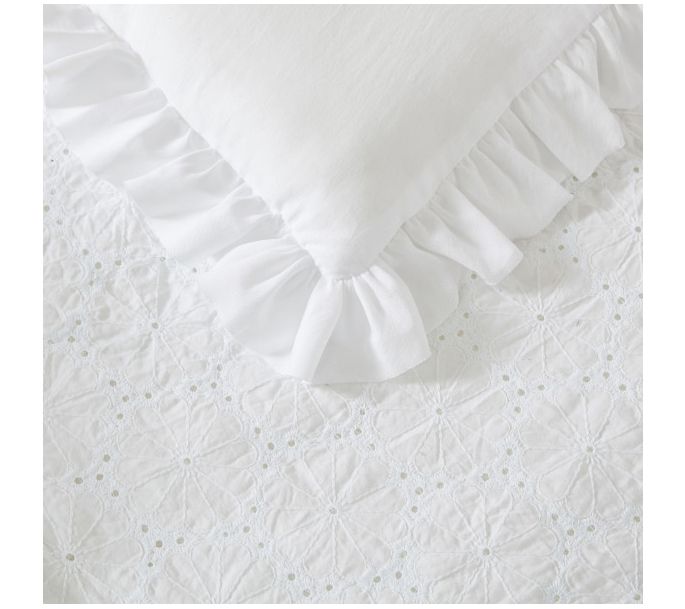 Bring a touch of elegance to your bedroom with the Laura Ashley Eyelet Ruffle Microfiber Comforter Set. This set features ornate embroidery and smooth solid bands, creating a sophisticated and timeless look. The lightweight polyester microfiber ensures comfort and easy care, making it perfect for any season. From Laura Ashley.