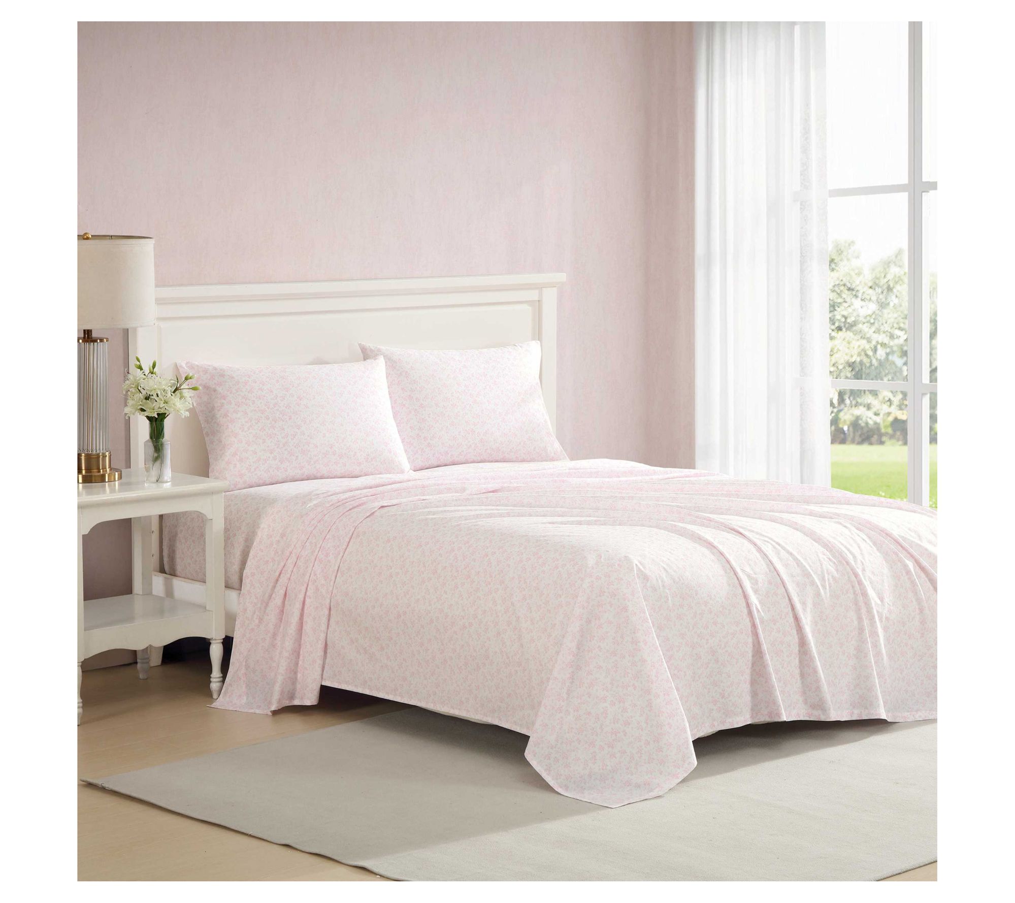 Wake up rested every morning surrounded by the soft, crisp comfort of this Laura Ashley Floral Toile Pink sheet set. Lightweight cotton percale delivers a smooth texture that feels inviting in any season, while the charming floral pattern brings timeless beauty to your bedroom retreat. From Laura Ashley.