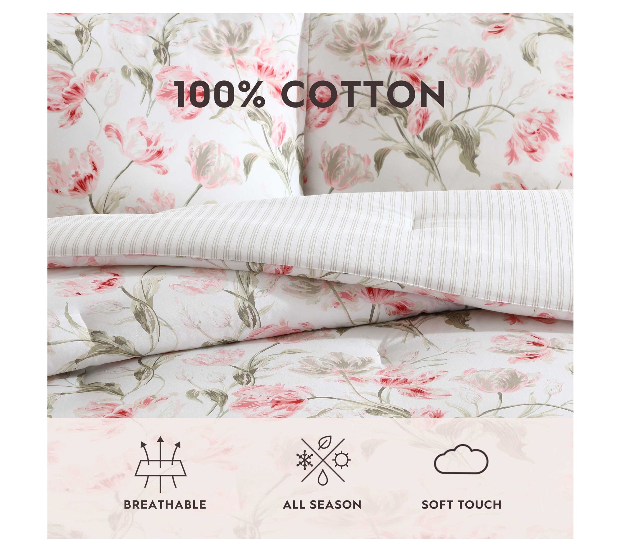 Wrap your bed in layers of subtle elegance and comfort with the Laura Ashley Gosford Petal Full/Queen Comforter Set. Coordinating shams and decorative pillow covers effortlessly pull together a polished look, inviting you to unwind in a space that feels both cozy and picture-perfect for any moment of relaxation. Let each evening feel special with classic floral patterns and soft cotton warmth. From Laura Ashley.