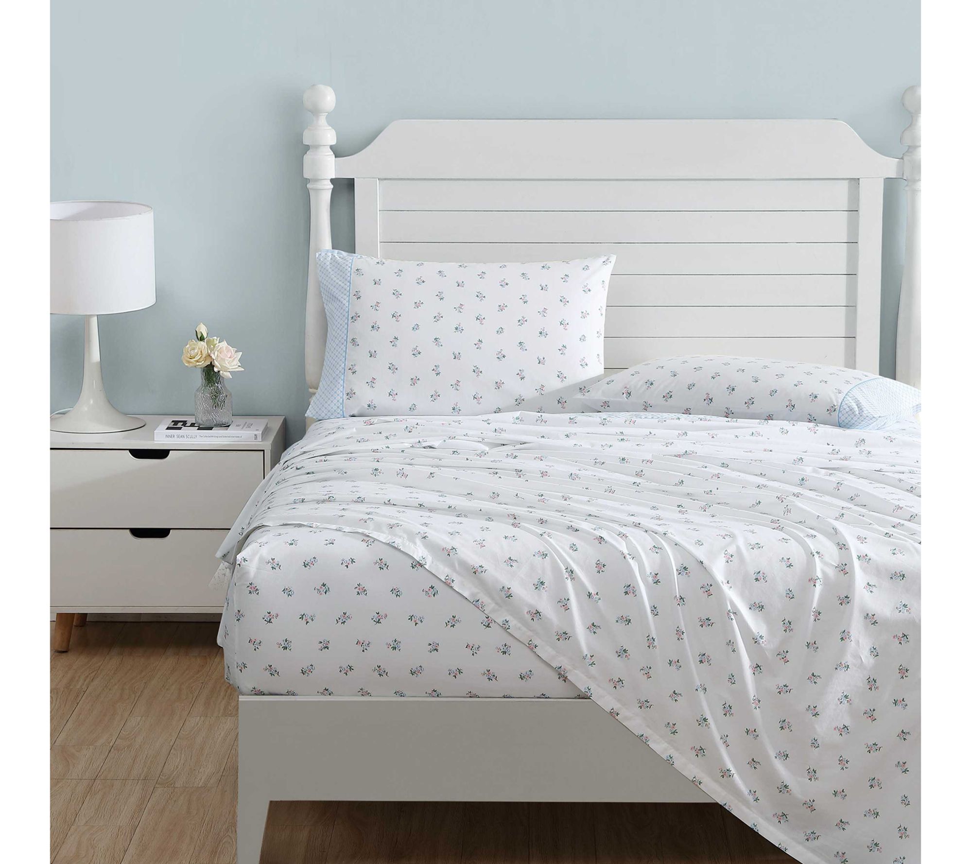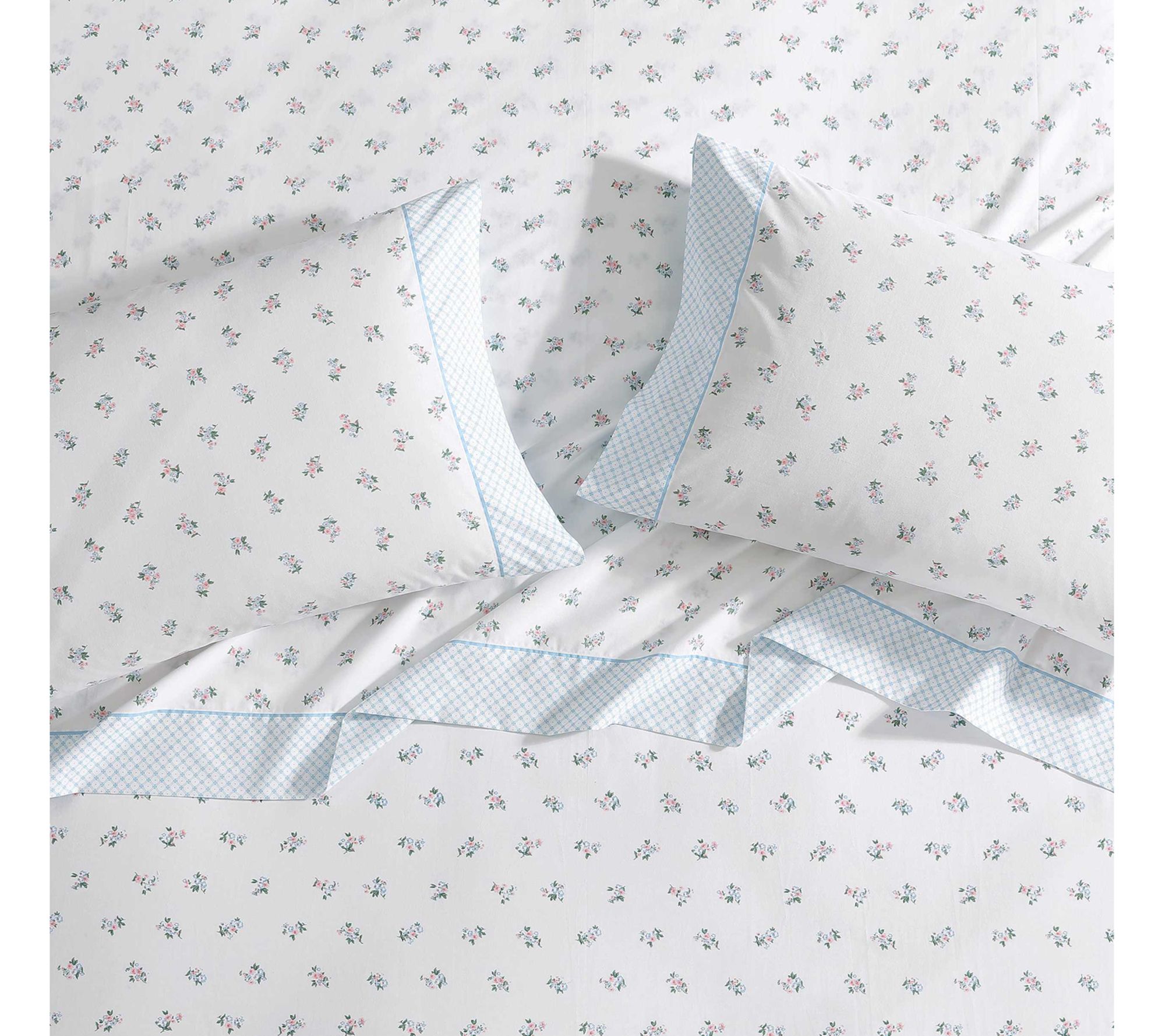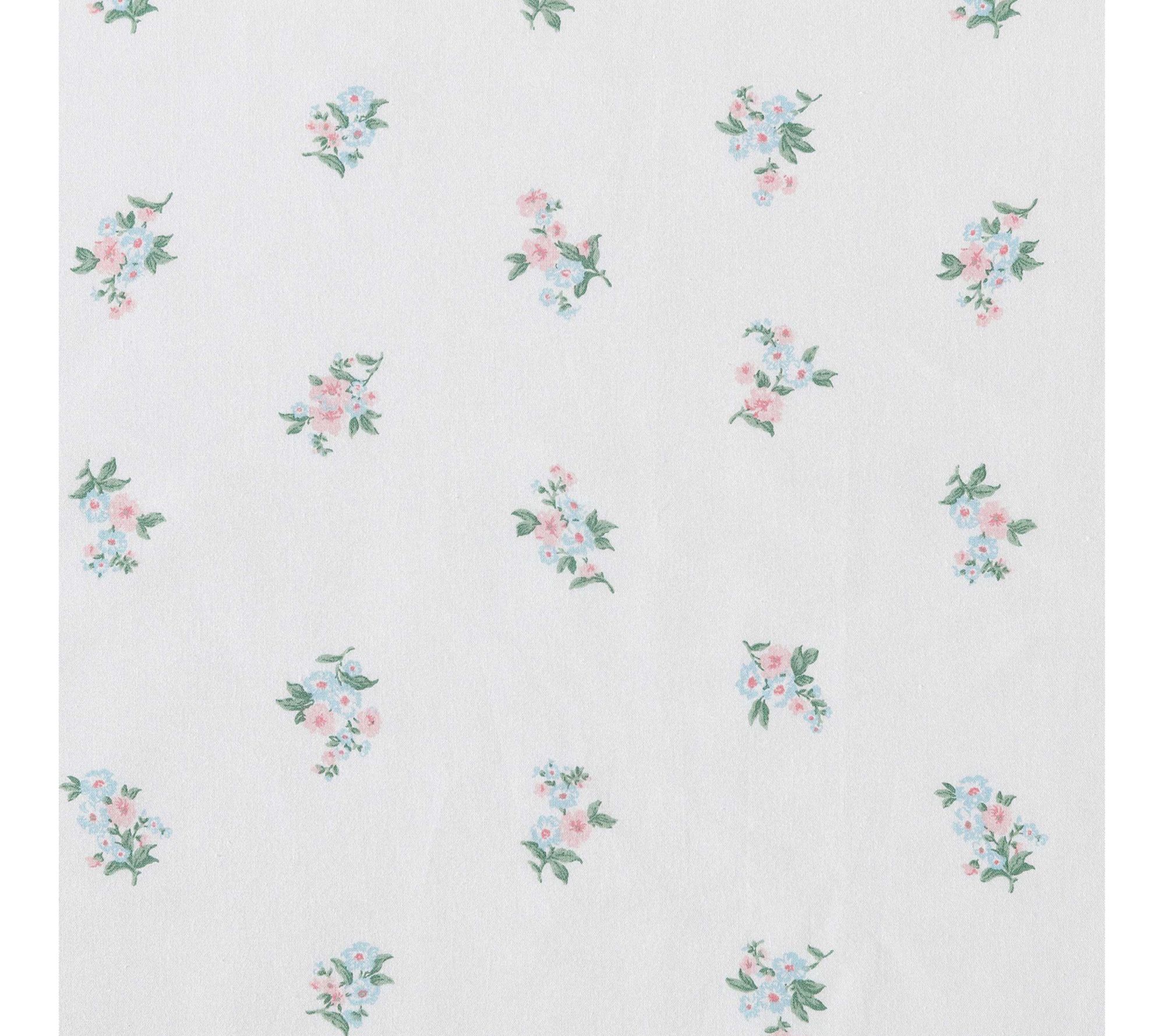Enhance your home dcor with Laura Ashley Harperette Pink-Blue Full Sheet Set that seamlessly combines classic floral prints with a distinctive printed hem accent. Enjoy the soft touch and enduring comfort of premium T200 Percale Cotton. From Laura Ashley.