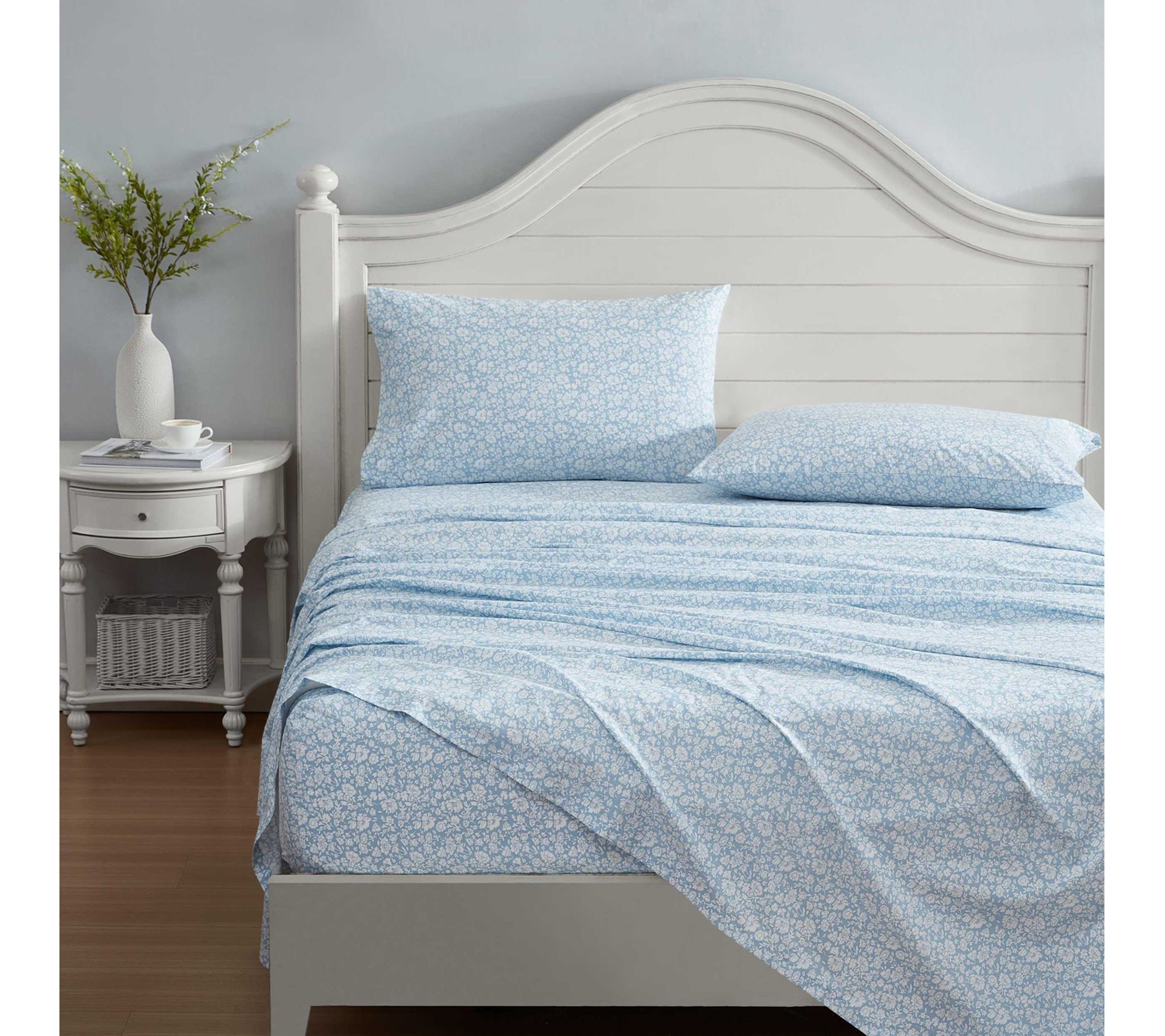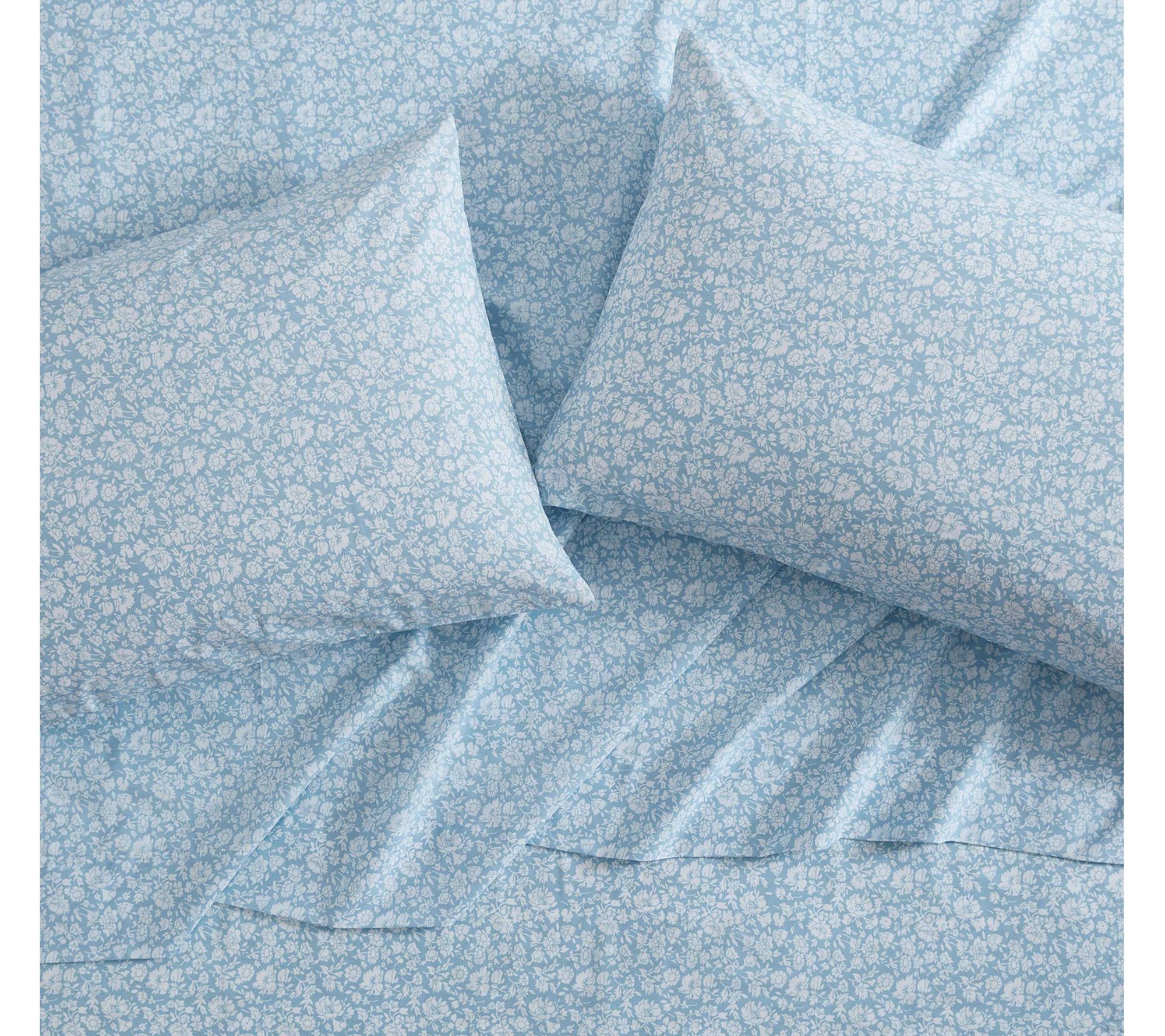 Give your bedroom an elegant upgrade with the Laura Ashley Heirloom Ditzy Blue TwinXL Sheet Set. Featuring a charming floral pattern, these 100% cotton sheets are cool, breathable, and lightweight, perfect for long-lasting comfort. From Laura Ashley.