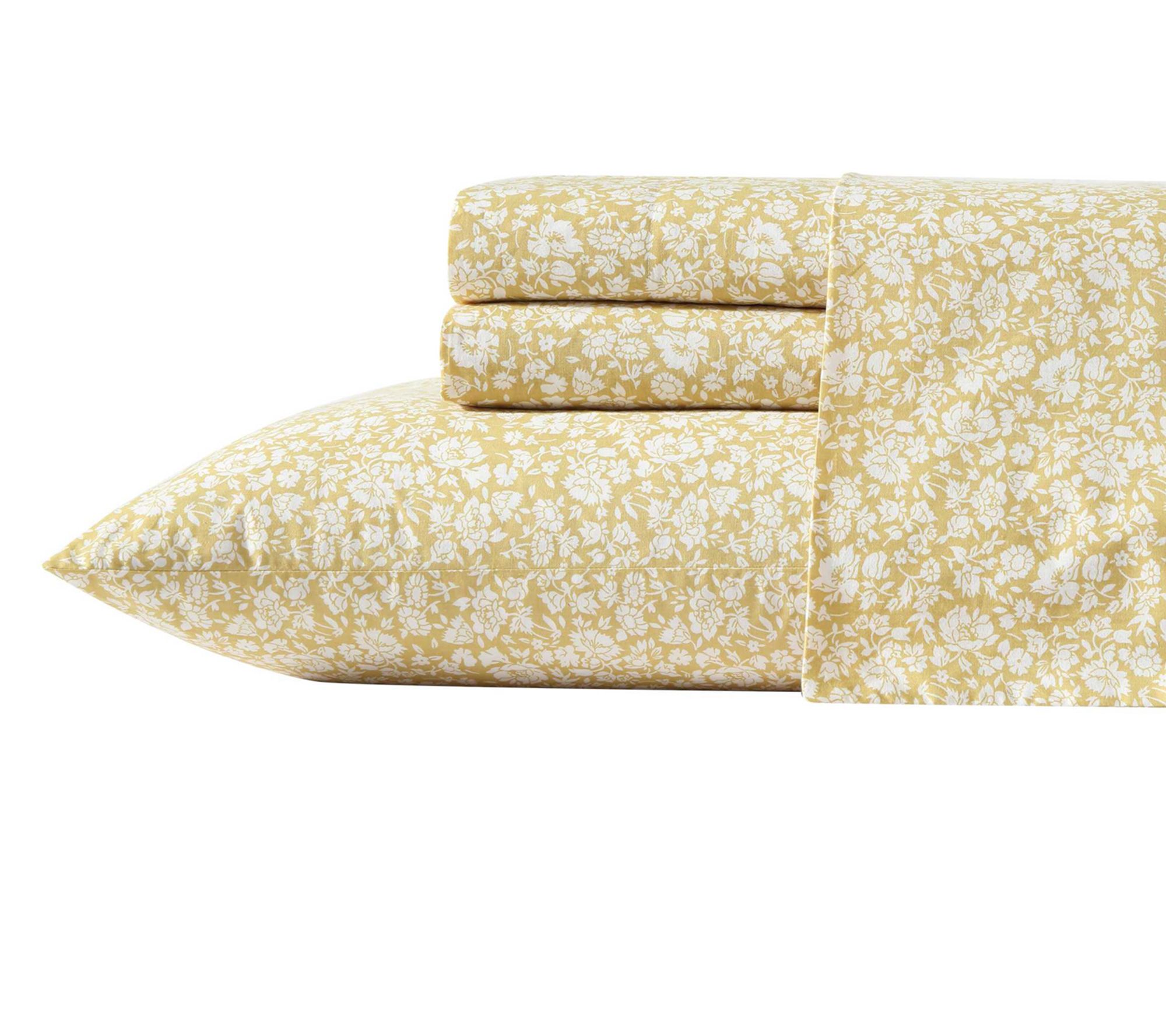 Rejuvenate your bedroom with the Laura Ashley Heirloom Ditzy Gold Full Sheet Set, featuring charming floral prints that bring a touch of timeless romance. Mix and match with your favorite Laura Ashley pieces to create a colorful and inviting sleep space. From Laura Ashley.
