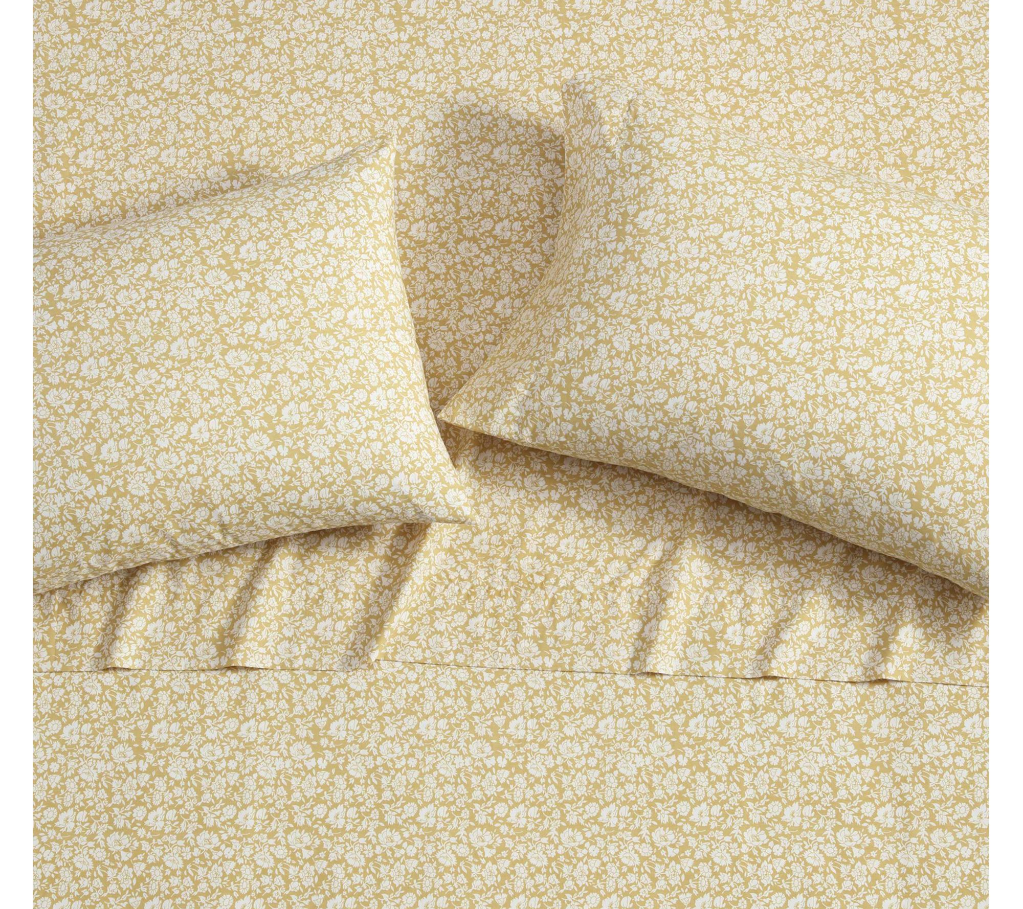 Bring a touch of timeless elegance into your bedroom with the Laura Ashley Heirloom Ditzy Gold King Sheet Set. Featuring a charming floral pattern, this set adds a romantic and sophisticated flair. These 200-thread count sheets are cool and lightweight, ensuring comfortable nights. From Laura Ashley.