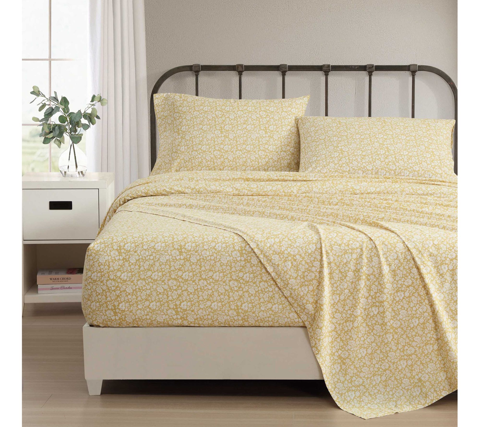 Add a timeless charm to your bedroom with the Laura Ashley Heirloom Ditzy Gold Queen Sheet Set. These beautiful floral print sheets are cool, breathable, and become softer with each wash. From Laura Ashley.