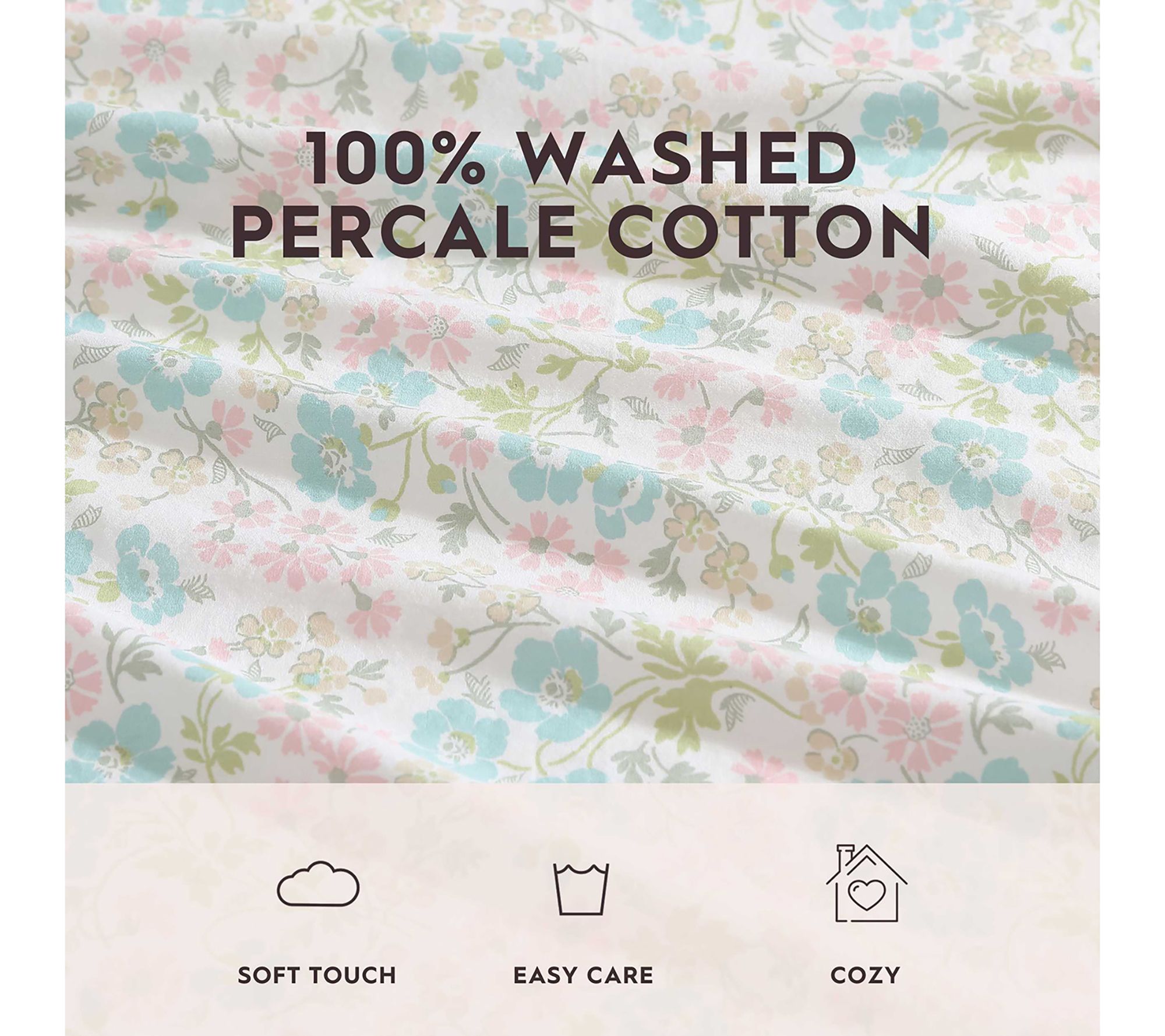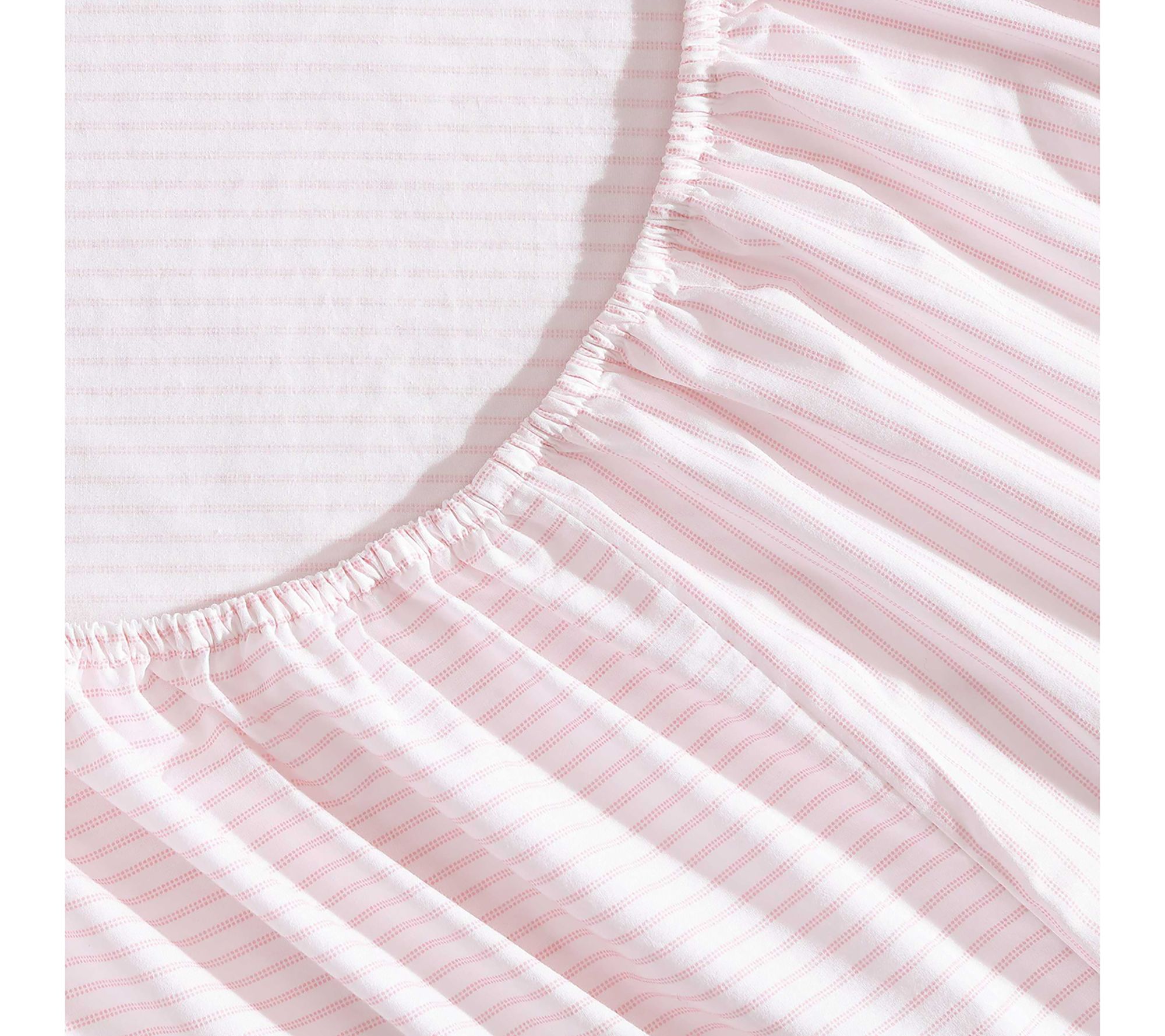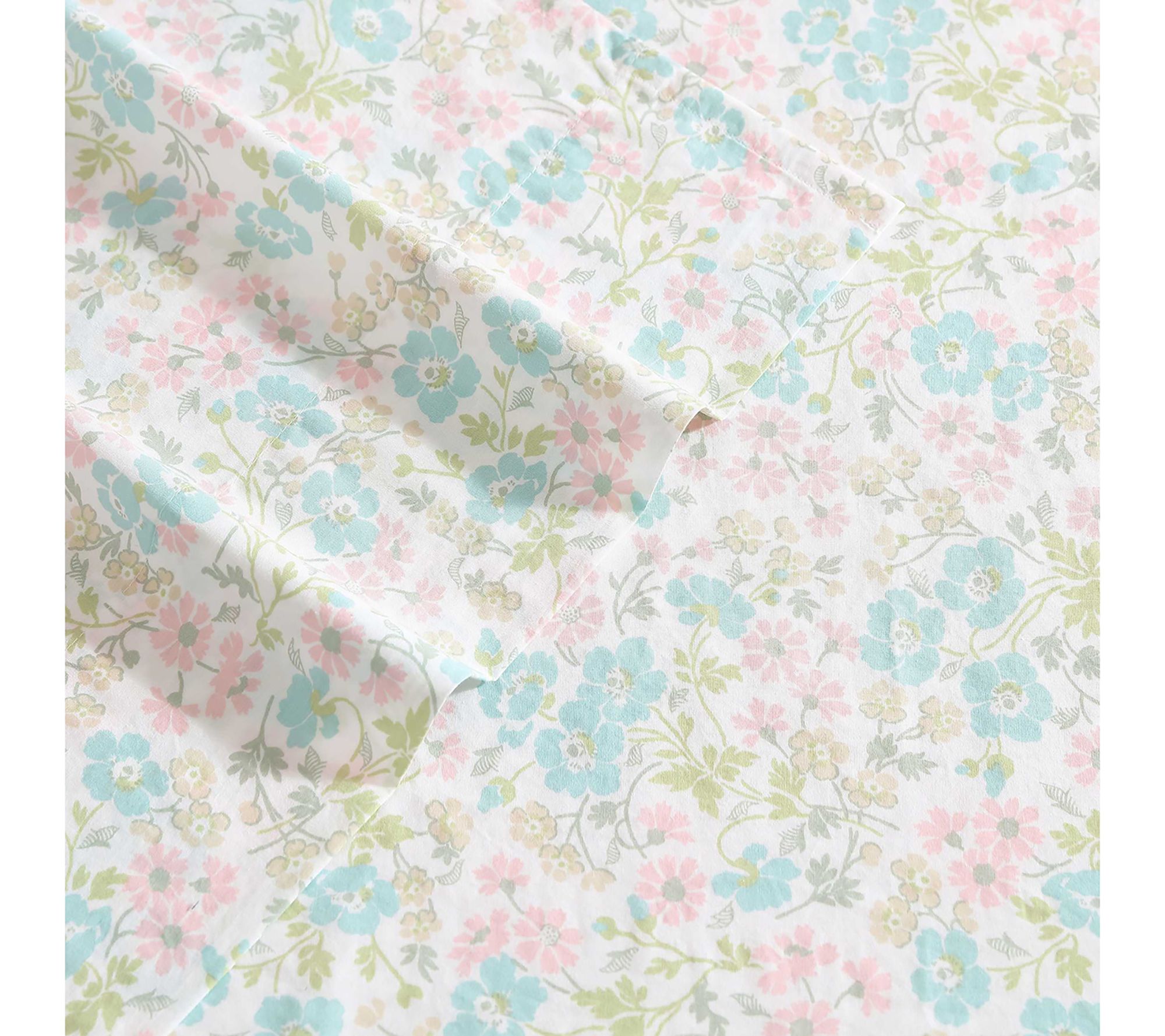 Mix it up with the Laura Ashley Jaynie King sheet set. This six-piece set features a charming mix of prints, combining a pink and blue ditsy floral pattern on the flat sheet with a pink stripe on the fitted sheet. Complete with four pillowcases, this set provides a beautifully coordinated look thatâs perfect for adding a touch of vintage-inspired style to your room. From Laura Ashley.