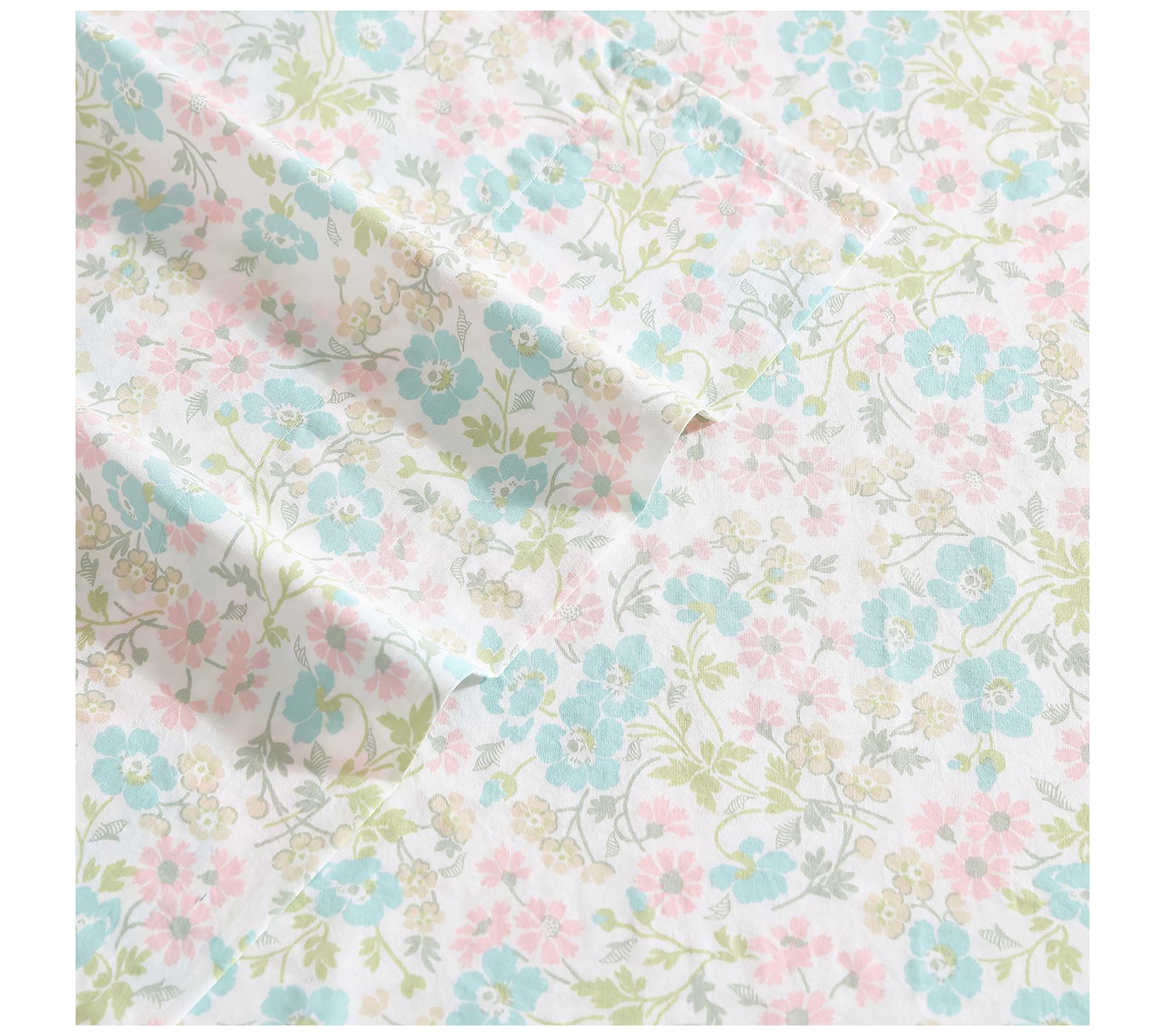 Mix it up with Laura Ashley's Jaynie Blue-Pink Queen sheet set that boasts a charming blue and pink floral print on cotton percale to brighten any bedroom. The beautifully coordinated collection ensures a perfect fit and offers the convenience of easy care. From Laura Ashley.