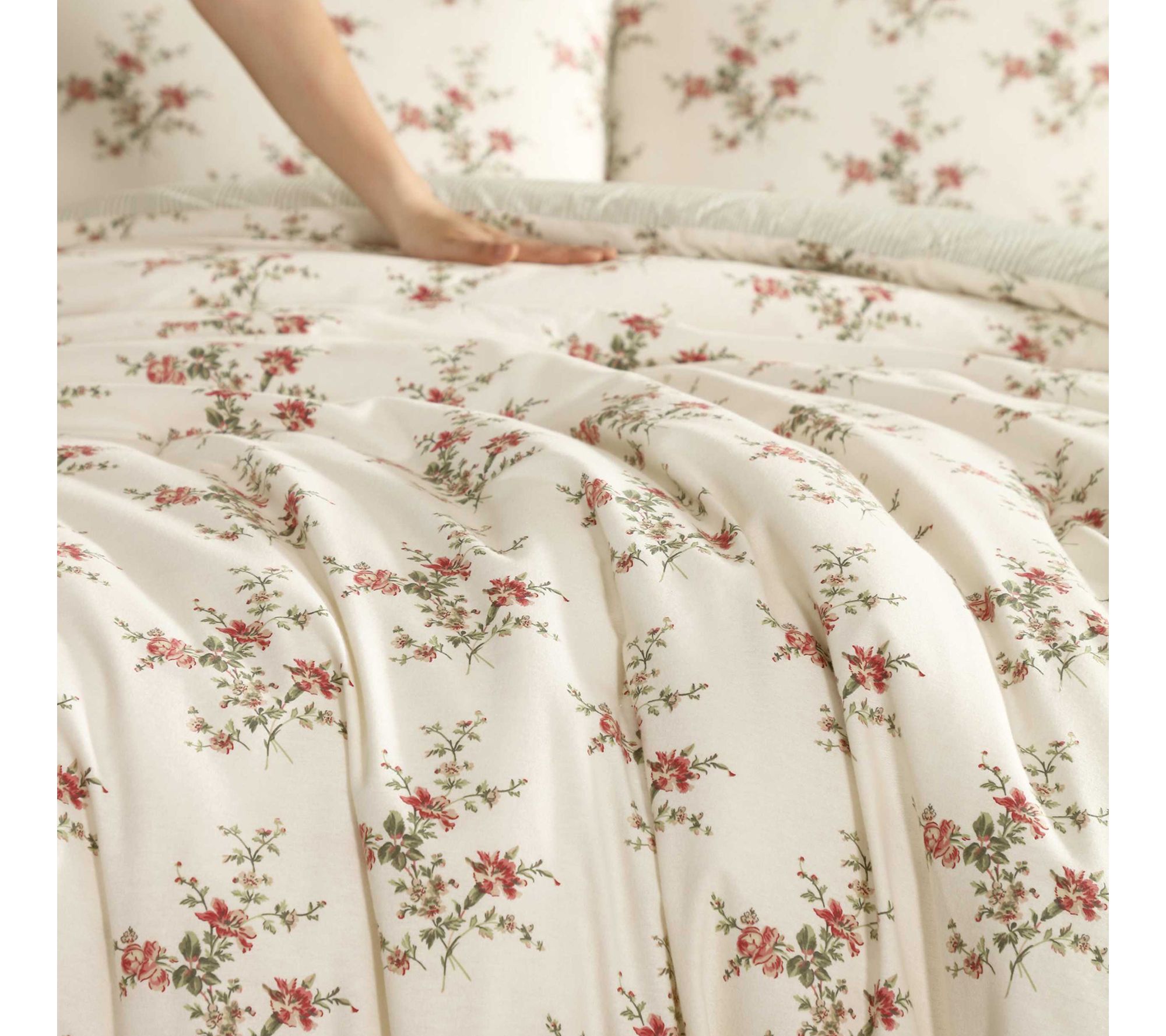 Soft cotton flannel and a floral motif invite you to add comfort and elegance to your bedroom retreat. The comforter set surrounds you in warmth and gentle texture, offering a cozy spot to unwind after a busy day or to ease into weekend mornings. Easy-care construction helps keep your bedding looking fresh season after season. From Laura Ashley.