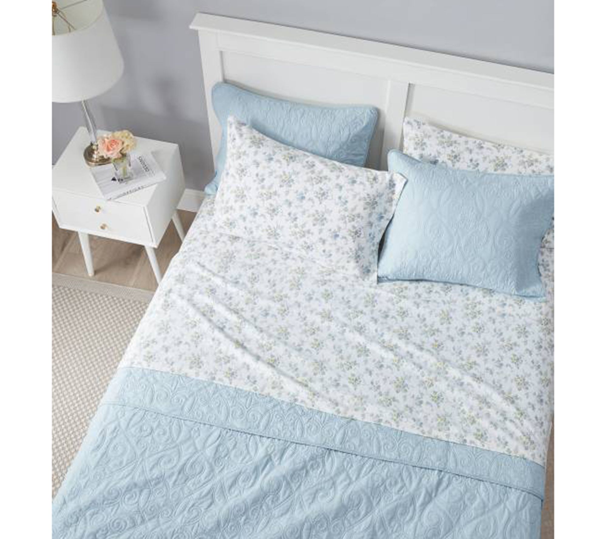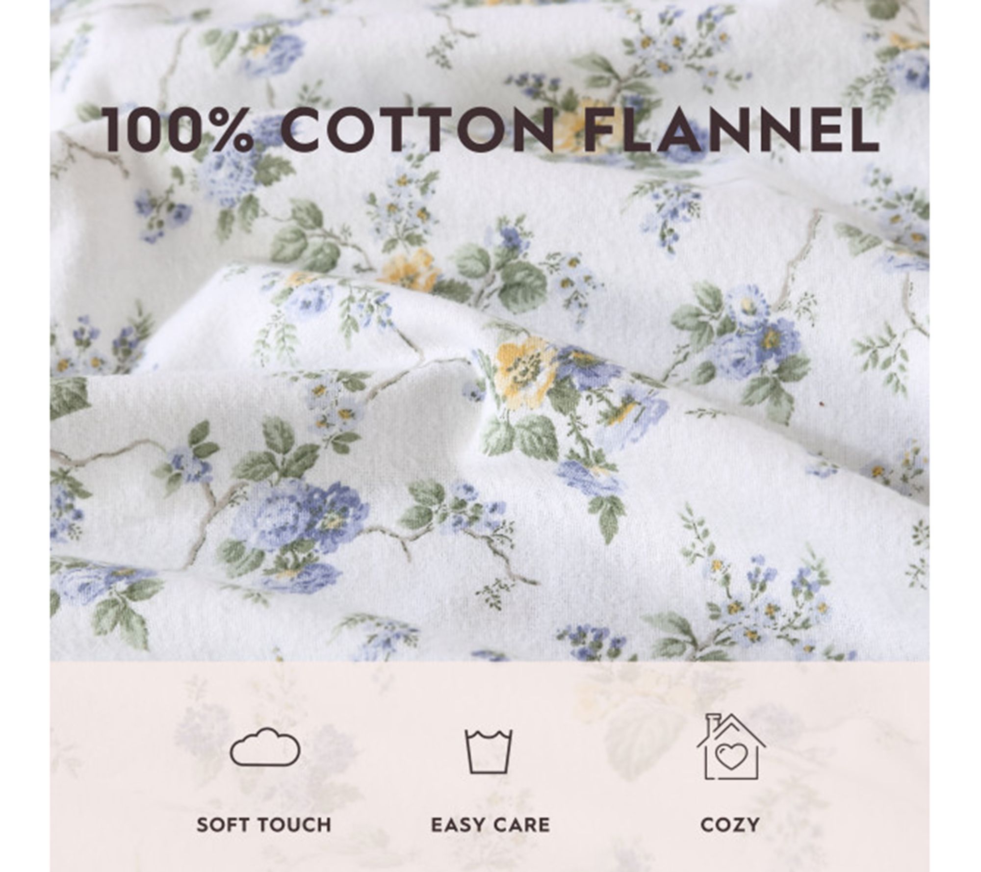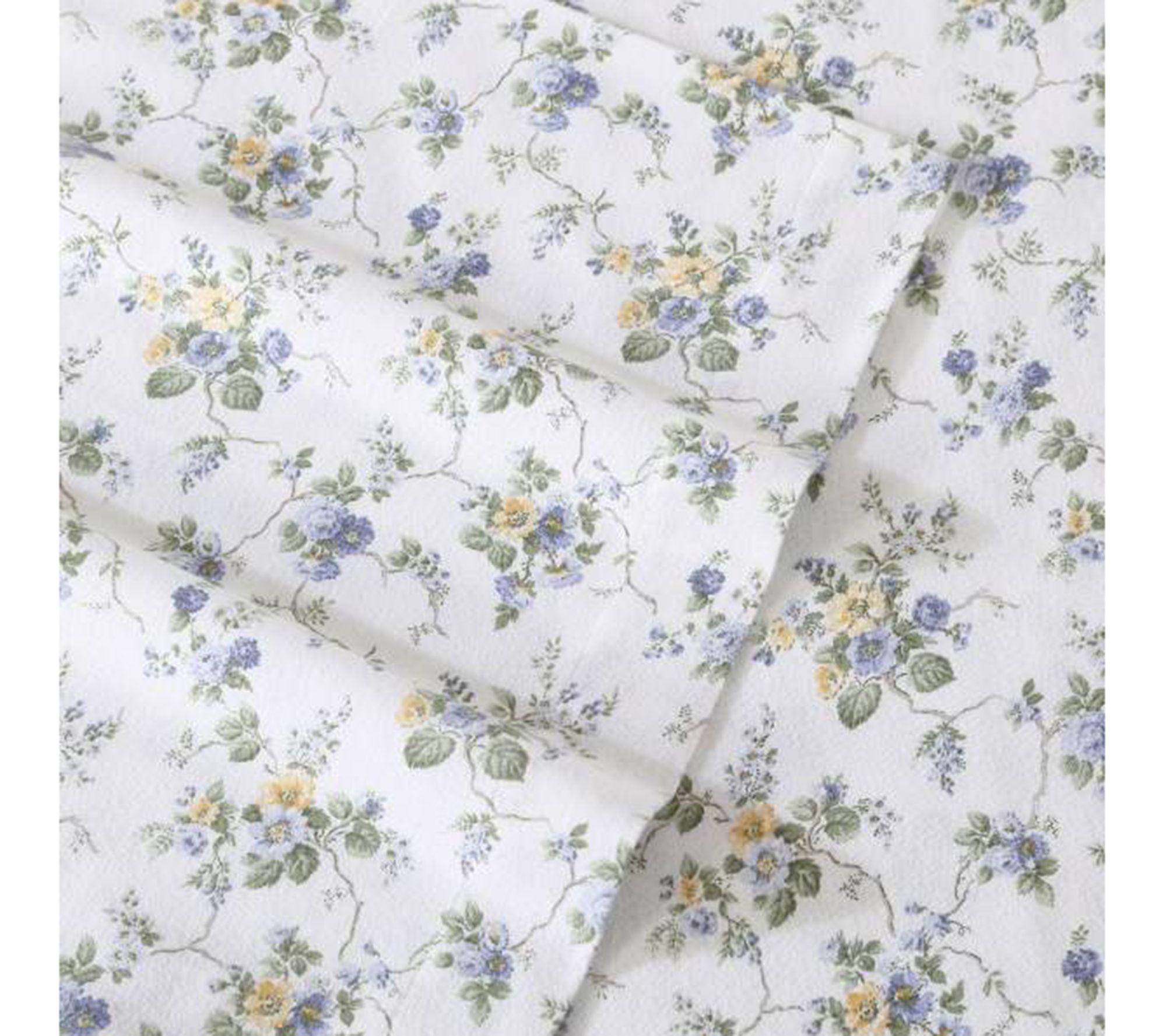 Add a touch of elegance to your bedroom with the Laura Ashley Le Fleur Blue King Sheet Set. Featuring a charming floral pattern, this set is crafted from 100% cotton for a soft and comfortable night's sleep. From Laura Ashley.