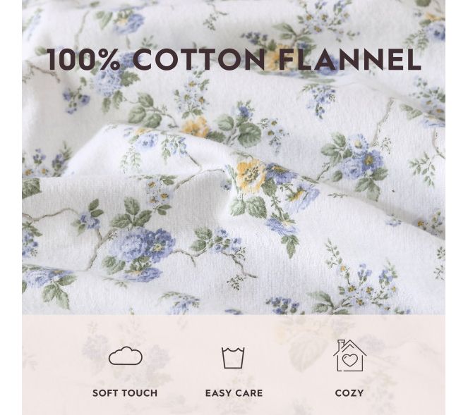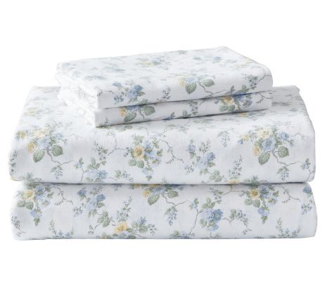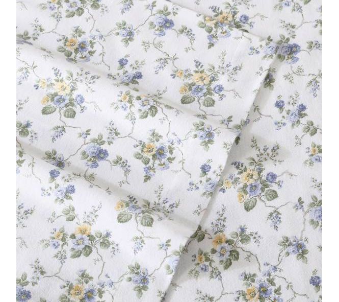 Transform your bedroom into a serene oasis with the Laura Ashley Le Fleur Blue Twin Sheet Set, featuring a delicate floral pattern that adds a touch of elegance to any decor. Enjoy the luxurious feel of 100% cotton flannel, brushed to perfection for ultimate softness and comfort. From Laura Ashley.