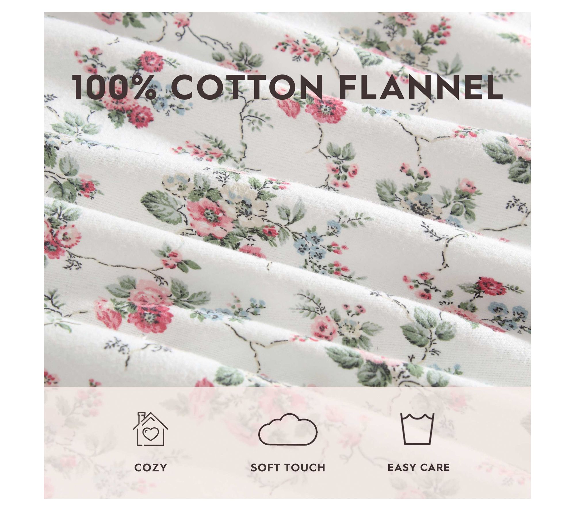 Refresh your bed with the cozy warmth of this Laura Ashley Le Fleur Pink Cotton Flannel Sheet Set. Whether curling up with a book or drifting into sleep, the extra-soft flannel, crafted with an advanced brushing process, delivers inviting comfort and a snug feel throughout the night. From Laura Ashley.