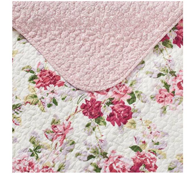 Bring a touch of English country charm to your bedroom with the Laura Ashley Lidia pink full/queen quilt and sham set. Romantic roses in cranberry and pinks bloom across the quilt, paired with a mini-print in petal pink and white on the reverse for a dreamy finish. From Laura Ashley.