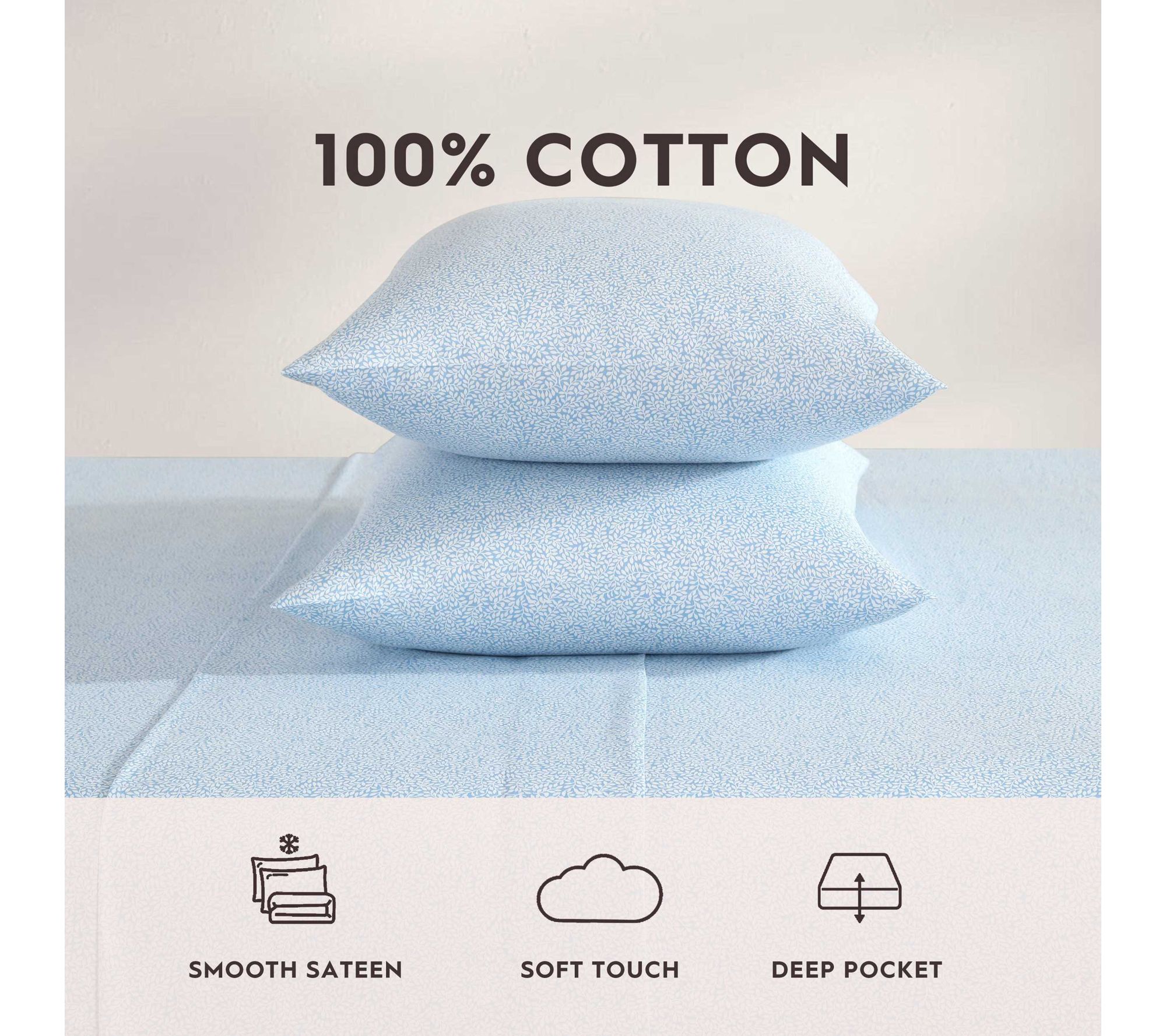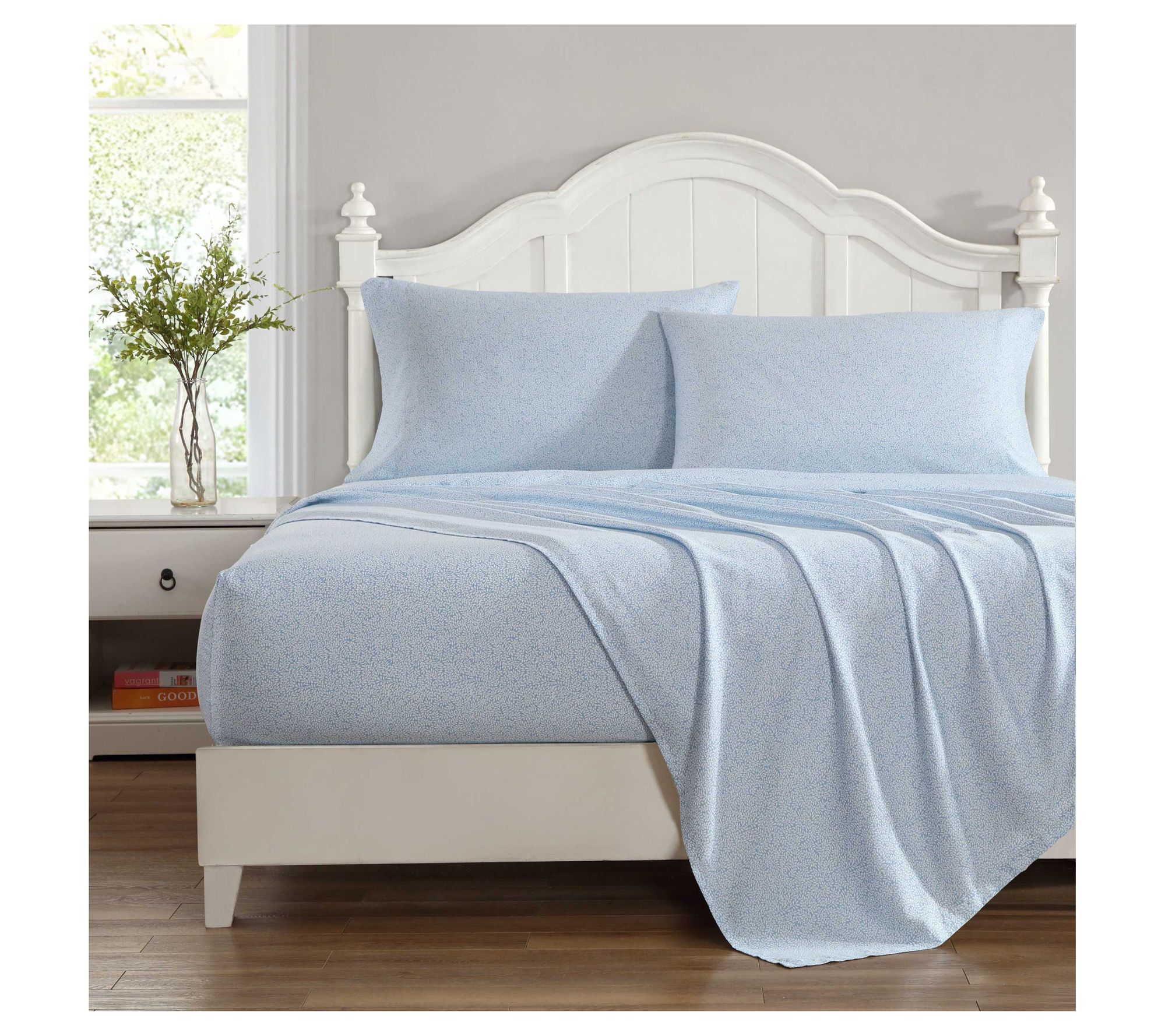 • Includes flat sheet, fitted sheet, and two pillowcases