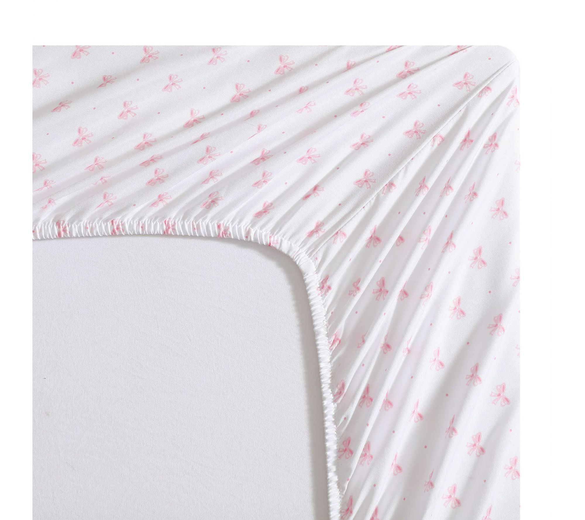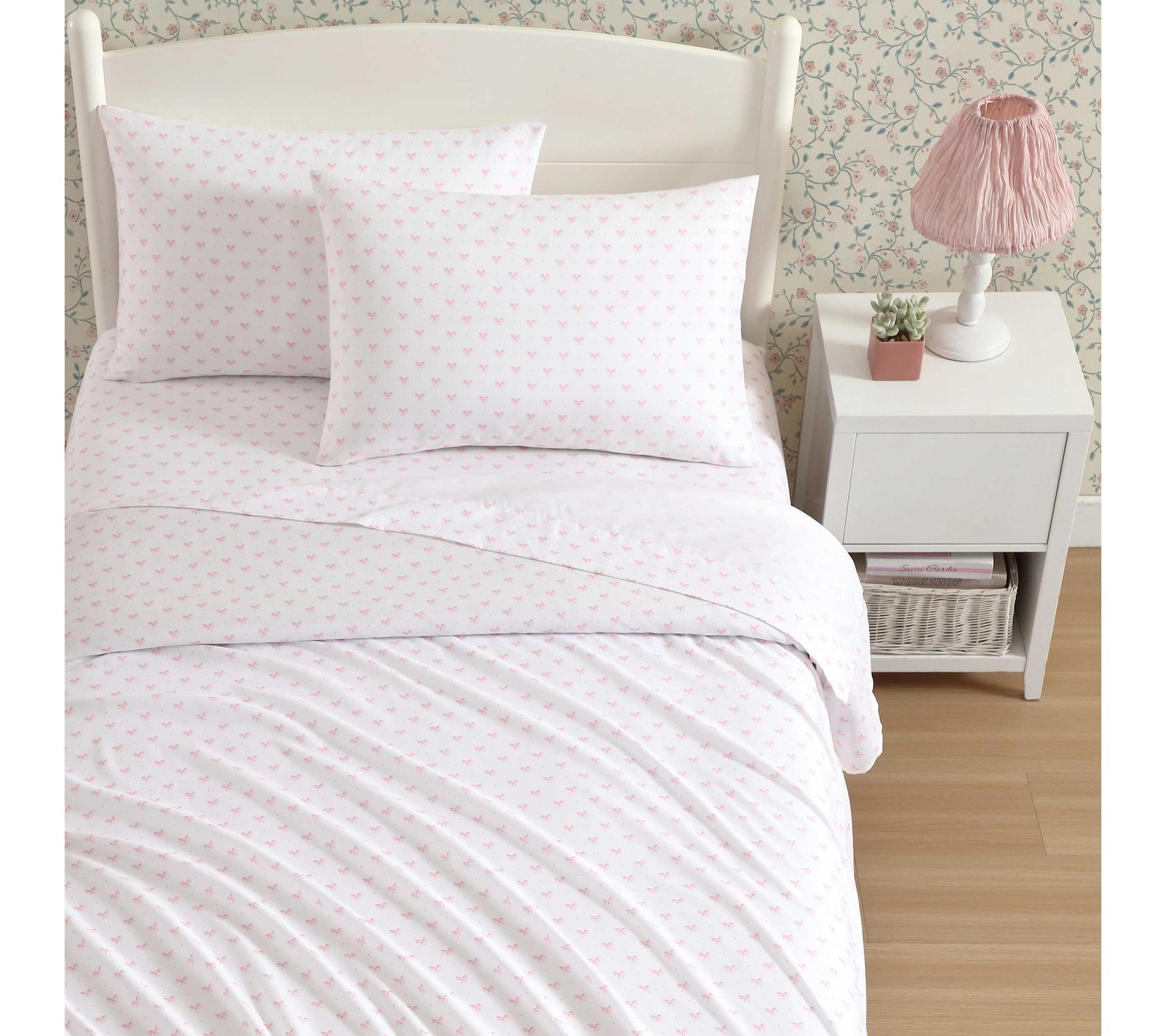 Bring a touch of charm and elegance to your child's bedroom with this adorable sheet set featuring soft pink bows. Perfect for adding a playful yet sophisticated look to any room, these sheets are made from 100% soft microfiber, ensuring a cozy and comfortable sleep. From Laura Ashley.