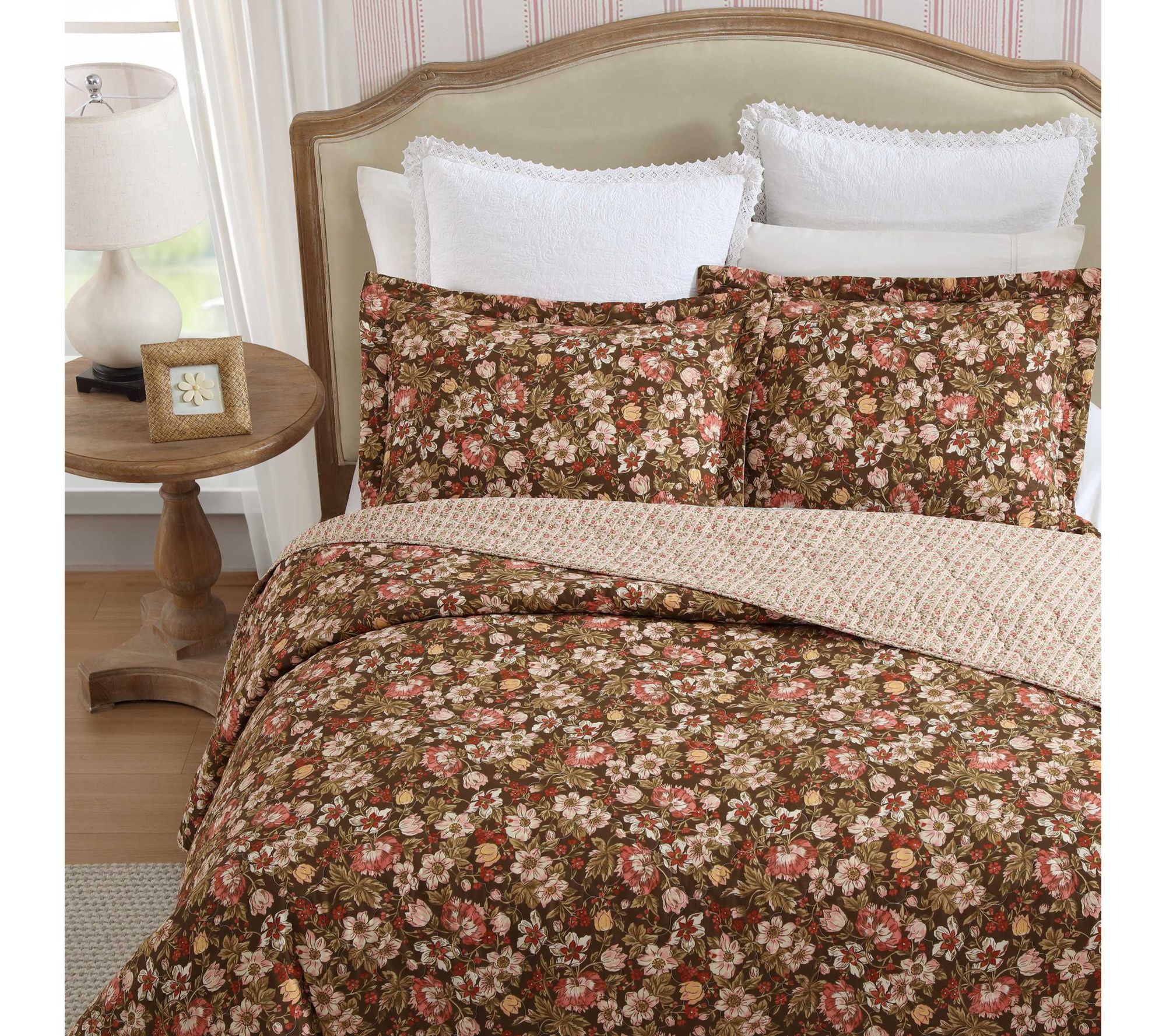 Add comfort and elegance to your bedroom with the Laura Ashley Marta Brown Full/Queen quilt and sham set. Featuring a timeless floral pattern, this set provides both beauty and practicality, making it ideal for any decor. From Laura Ashley.
