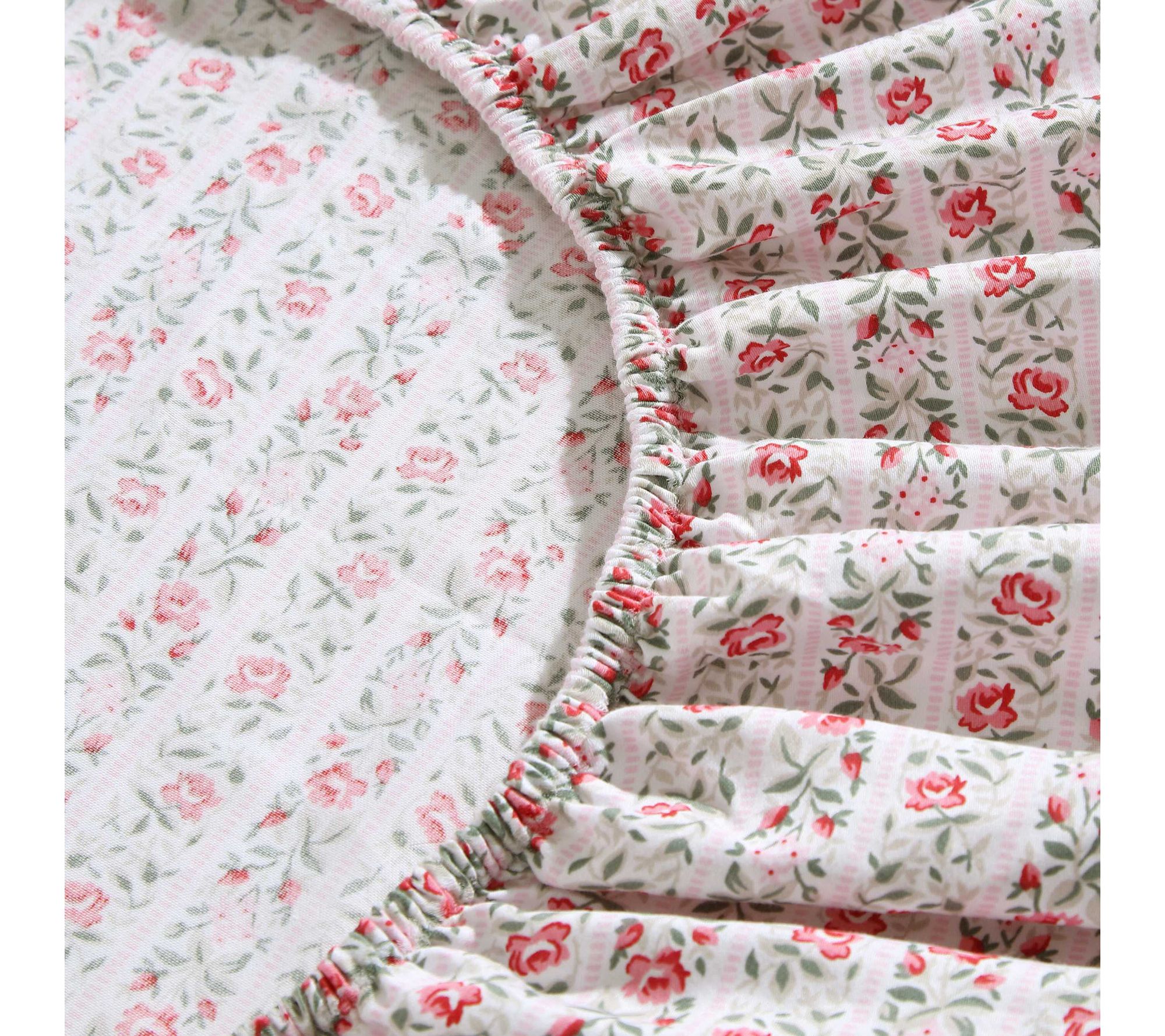 Laura Ashley Marta Stripe Pink-Green Queen Sheet Set