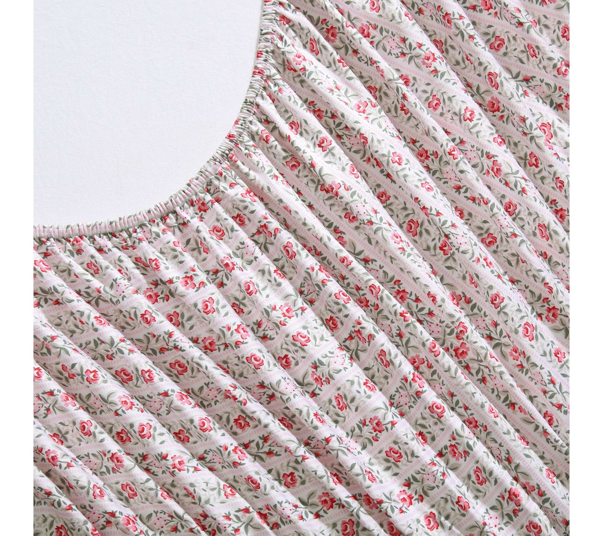 Infuse your bedroom with vintage charm through the Laura Ashley Marta Stripe sheet set. With lovely pink and green floral patterns on a soft, silky, 300-thread count cotton sateen, these sheets bring a touch of romantic elegance to your space. They'll continue to grow softer with each wash, ensuring a delightful night's sleep for years to come. From Laura Ashley.