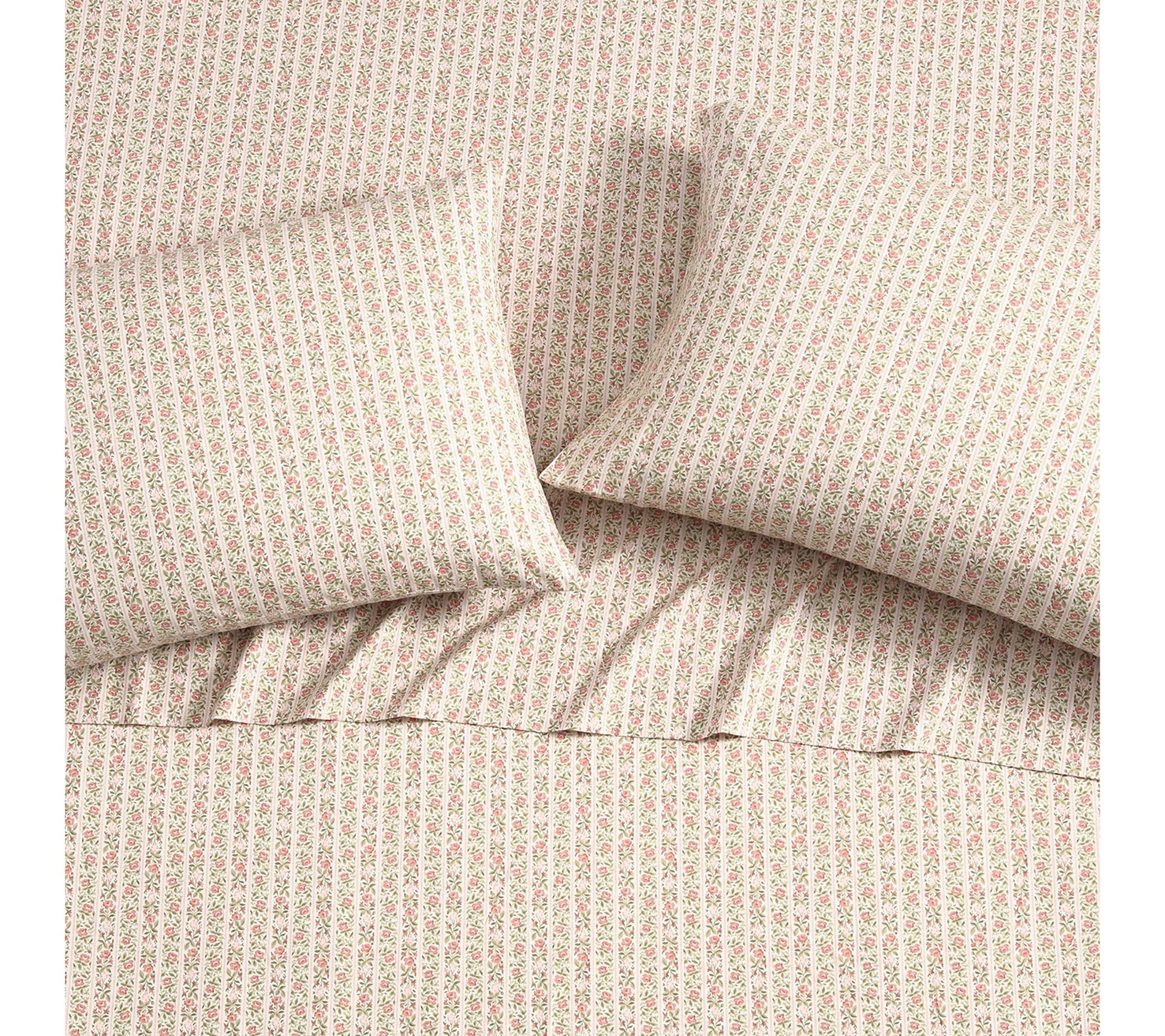 Add a charming romantic touch to your bedroom with the Laura Ashley Marta Stripe Pink Twin XL Sheet Set. Mix and match these timeless floral patterns with your favorite duvet covers, quilts, or comforters for a cohesive look. From Laura Ashley.